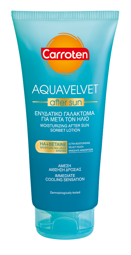 Aquavelvet, after-sun, Carroten, ενυδατικό γαλάκτωμα για μετά τον ήλιο, με άμεση αίσθηση δροσιάς.