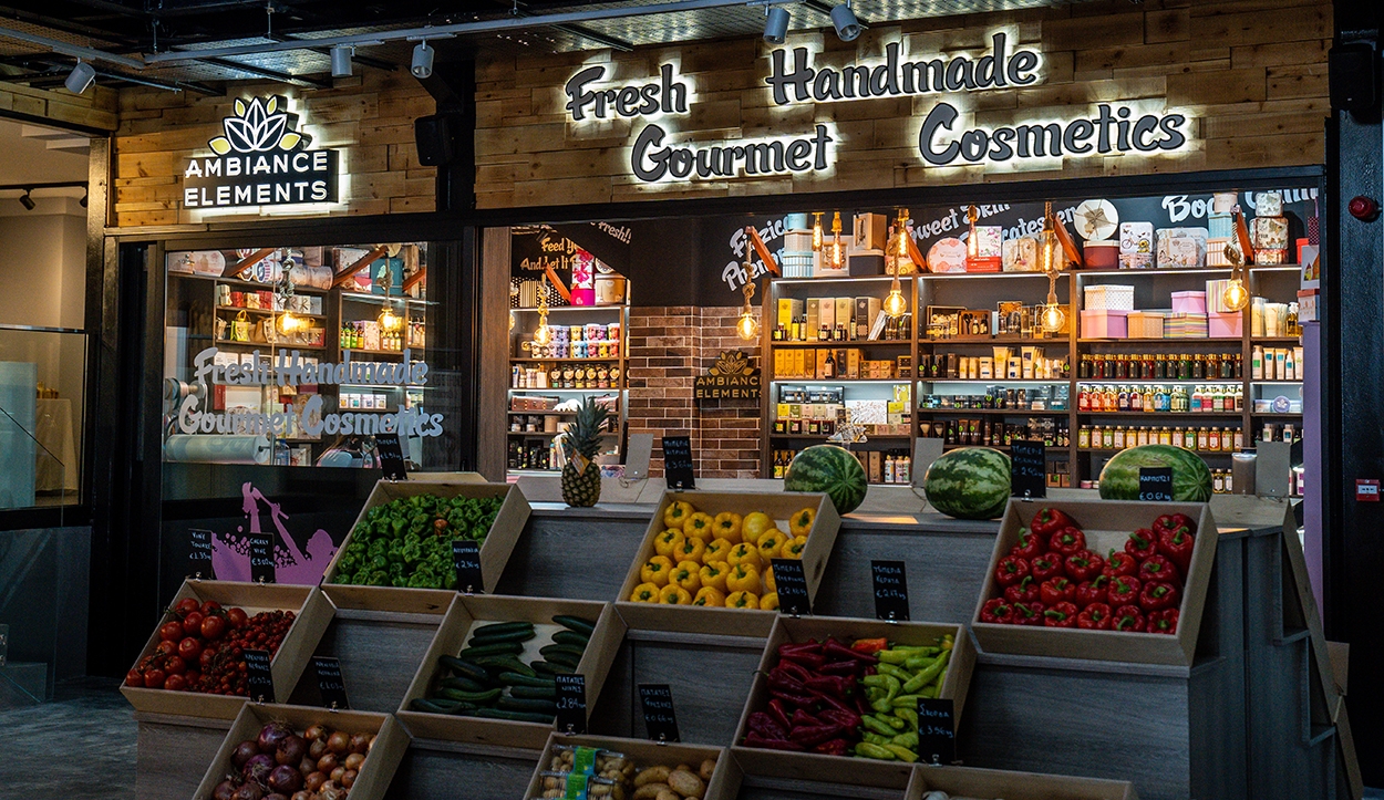 Ο κλιματιζόμενος χώρος, προσφέρει στους επισκέπτες μια πληθώρα επιλογών με κουζίνες από όλο τον κόσμο. Μάλιστα, περιλαμβάνουν παραδοσιακά εδέσματα, πίτσα, μακαρονάδες, φαγητά σχάρας, λιβανέζικη και μεξικάνικη κουζίνα, σουβλάκι, σαλάτες, burgers αλλά και θαλασσινά. Μεταξύ άλλων, οι επισκέπτες έχουν την ευκαιρία να πραγματοποιήσουν και τα ψώνια τους στα μαγαζιά που βρίσκονται εντός της Αγοράς. Εδώ θα βρείτε παραδοσιακό αρτοποιείο, φρούτα και λαχανικά, gourmet popcorn, τυριά και αλλαντικά, παγωτό, κρασιά και οινοπνευματώδη ποτά, ζαχαροπλαστείο, ξηρούς καρπούς και αποξηραμένα φρούτα, κρεοπωλείο, οπτικά, περίπτερο, χειροποίητα καλλυντικά αλλά και κατάστημα επιδιόρθωσης και πώλησης προϊόντων τεχνολογίας.