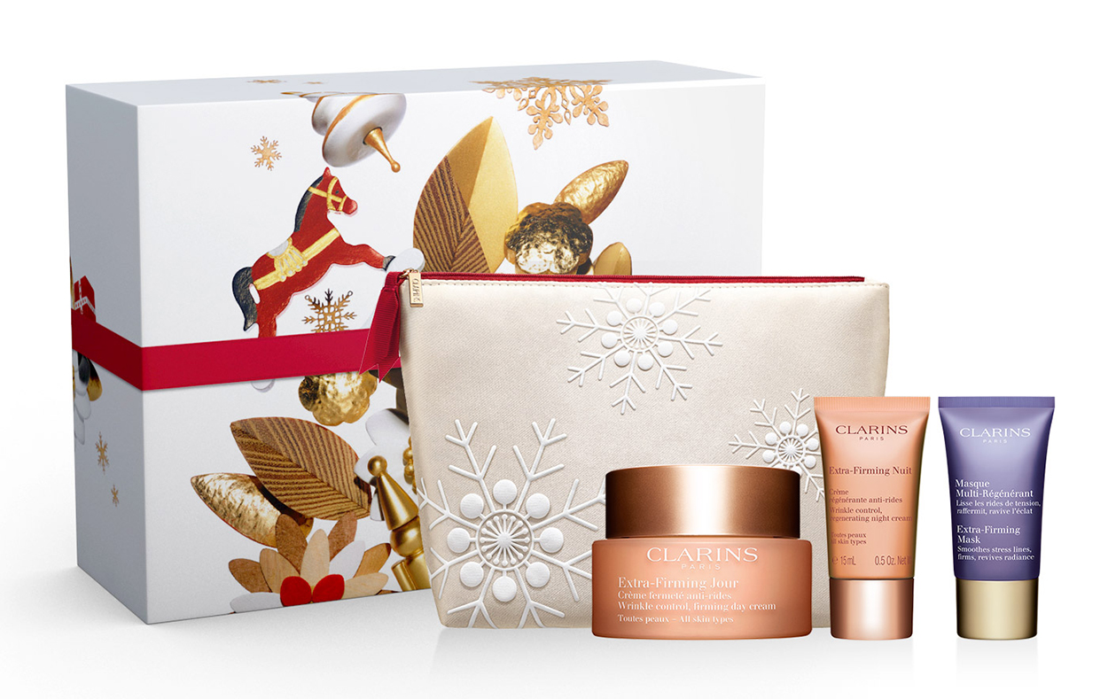 Στην κομψή συσκευασία θα βρει μια κρέμα ημέρας Extra-Firming Day Cream All Skin Types (σε κανονικό μέγεθος των 50ml) και επιπλέον μια κρέμα νύχτας Extra-Firming Night Cream All Skin Types (15ml) και μια Extra-Firming Face Mask (15ml). Όσο για την τιμή του; Κοστίζει € 86 και θα το βρεις στους πάγκους της Clarins στα μεγάλα καταστήματα ομορφιάς.