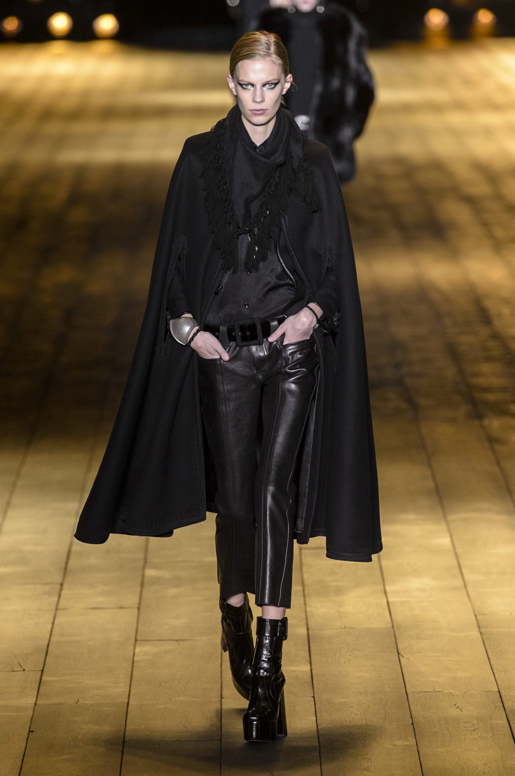 – Αν την φορέσετε με παντελόνι πρέπει να είναι οπωσδήποτε skinny ή σε εντελώς ίσια γραμμή (όπως π,χ, στο Saint Laurent show).