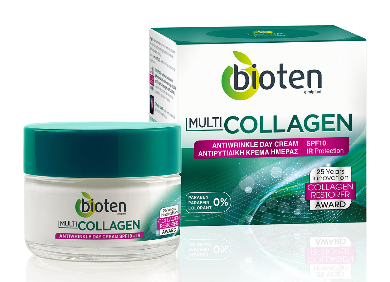 Multi Collagen, Bioten, κρέμα ημέρας, εμπλουτισμένη με το βραβευμένο συστατικό Collagen Restorer που ενεργοποιεί 3 τύπους κολλαγόνου της επιδερμίδας. Ιδανική για ηλικίες των 35-55, προσφέροντας θεαματικά αποτελέσματα κατά των ρυτίδων!
