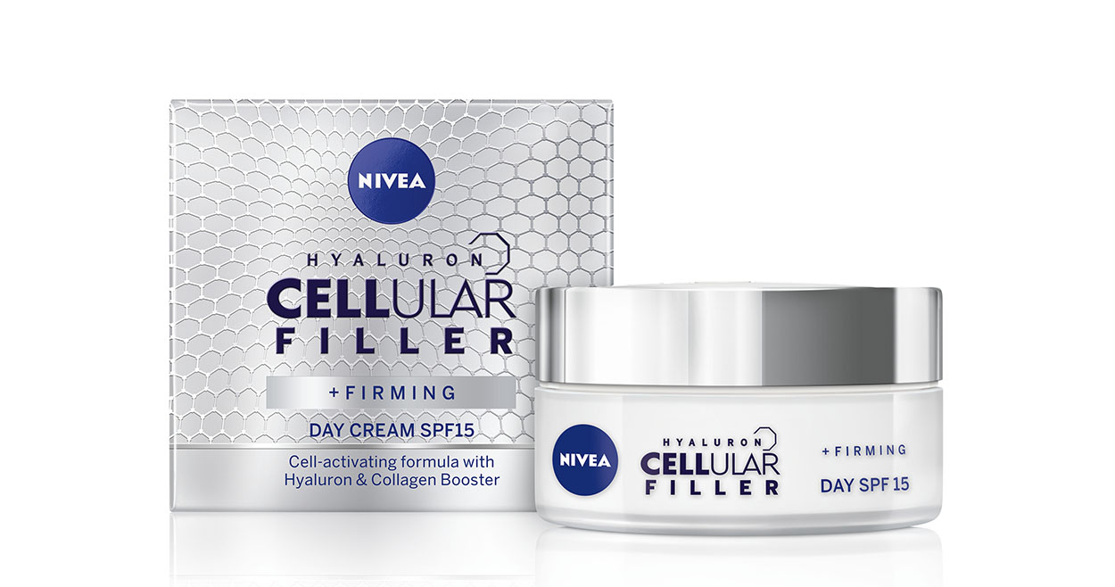 Cellular Hyaluron Filler, Firming Day Cream, Nivea, κρέμα ημέρας, με δείκτη προστασίας SPF15, μειώνει αισθητά τις ρυτίδες, ανανεώνει την όψη της επιδερμίδας, την αναζωογονεί και την ενυδατώνει σε βάθος
