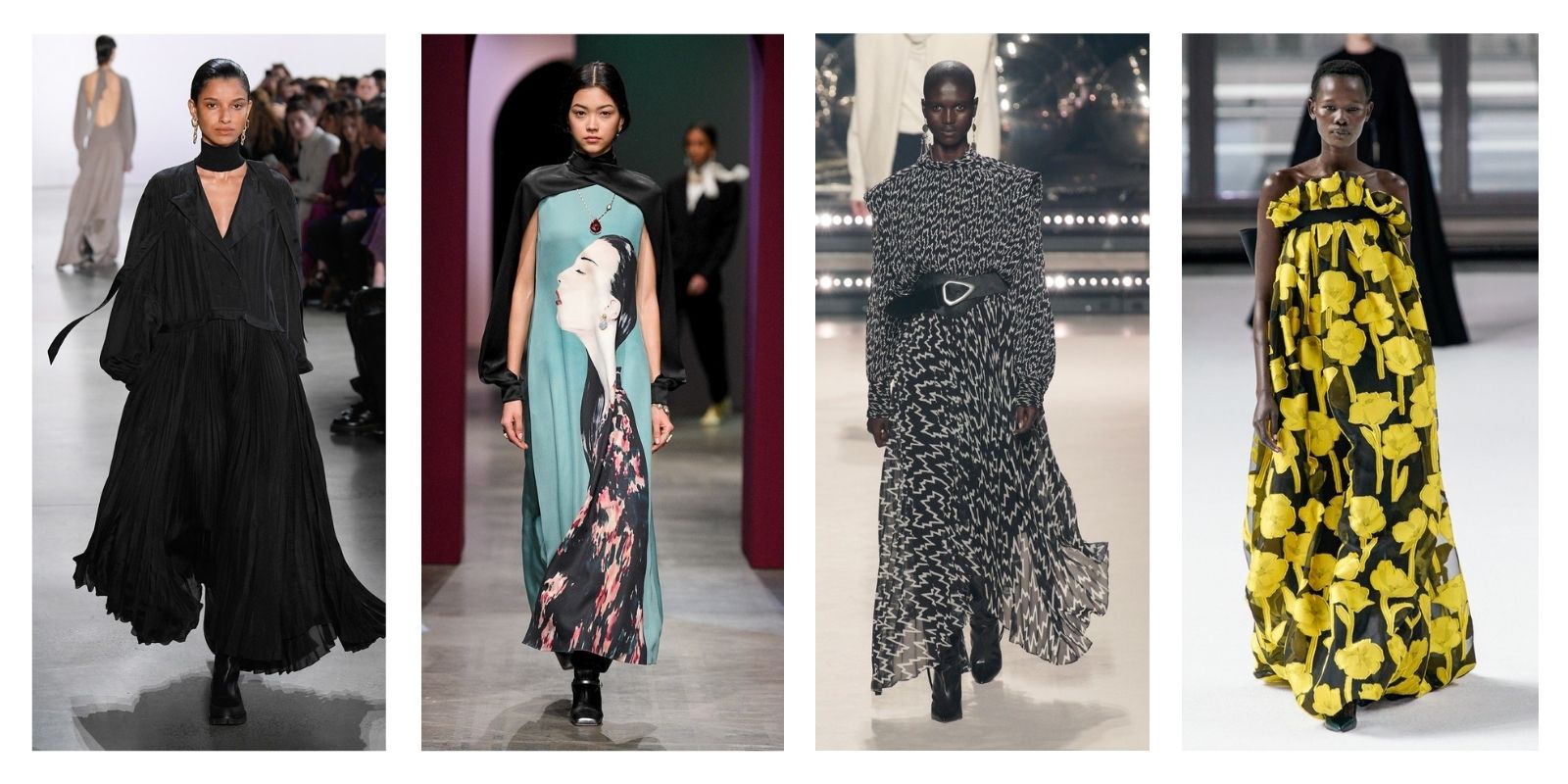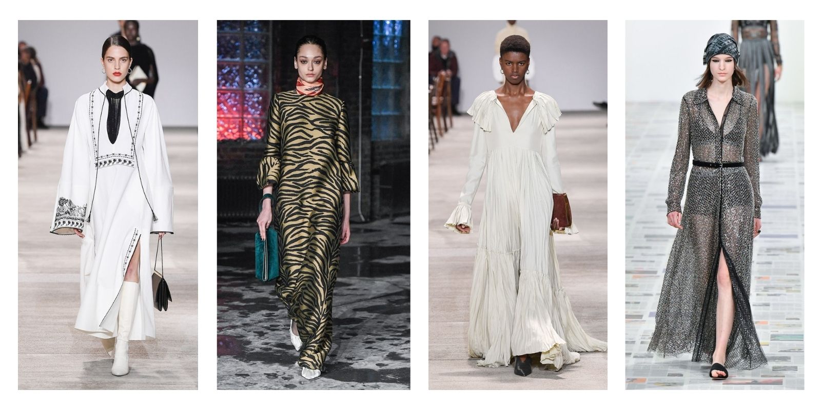Σιλουέτες που θυμίζουν καθημερινά φορέματα σε στιλ της δεκαετίας του ’40 και μεσαιωνικούς χιτώνες, ολοκληρώνουν την τάση. Αυτά τα look είναι σχεδιασμένα και κομμένα για να κυλούν πάνω από το σώμα, χαρίζοντας την απόλυτη ελευθερία στις κινήσεις, και μάλιστα χωρίς συμβιβασμούς στο στυλ… Επομένως χαλάρωσε και αγκάλιασε αυτή την πιο ελεύθερη τάση. Το μυαλό και το σώμα σου θα σε ευγνωμονούν! Στο… υποσχόμαστε!.
