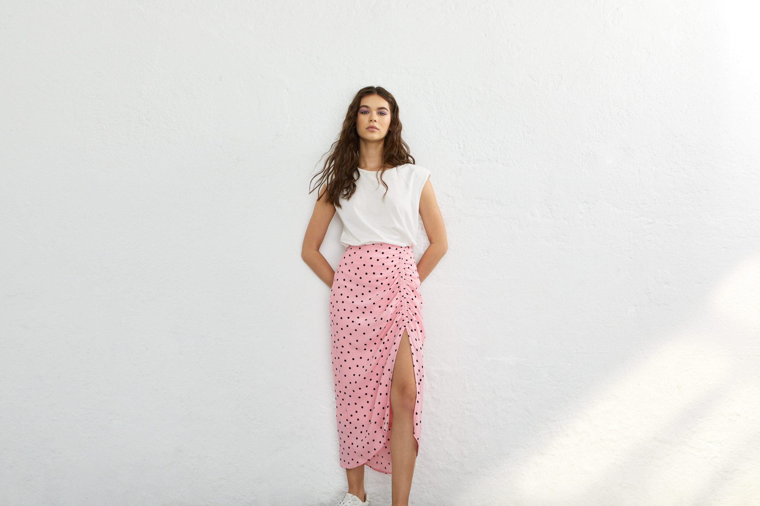 Pencil & polka dots: Η πιο εφαρμοστή φούστα που βρίσκεται στην ντουλάπα σου, φέτος αποφάσισε να χαλαρώσει… Κι αυτή τη σεζόν αποκτά μπροστινό σχίσιμο και σούρα στην μέση.