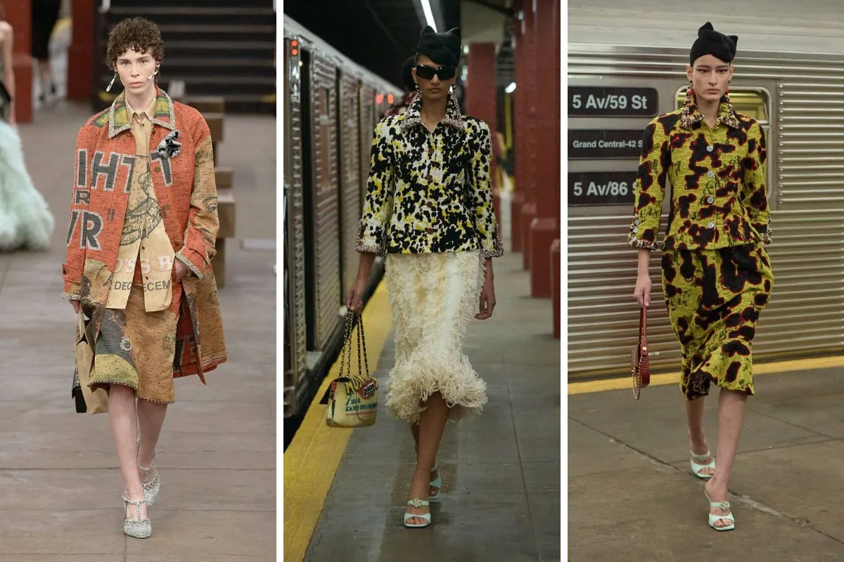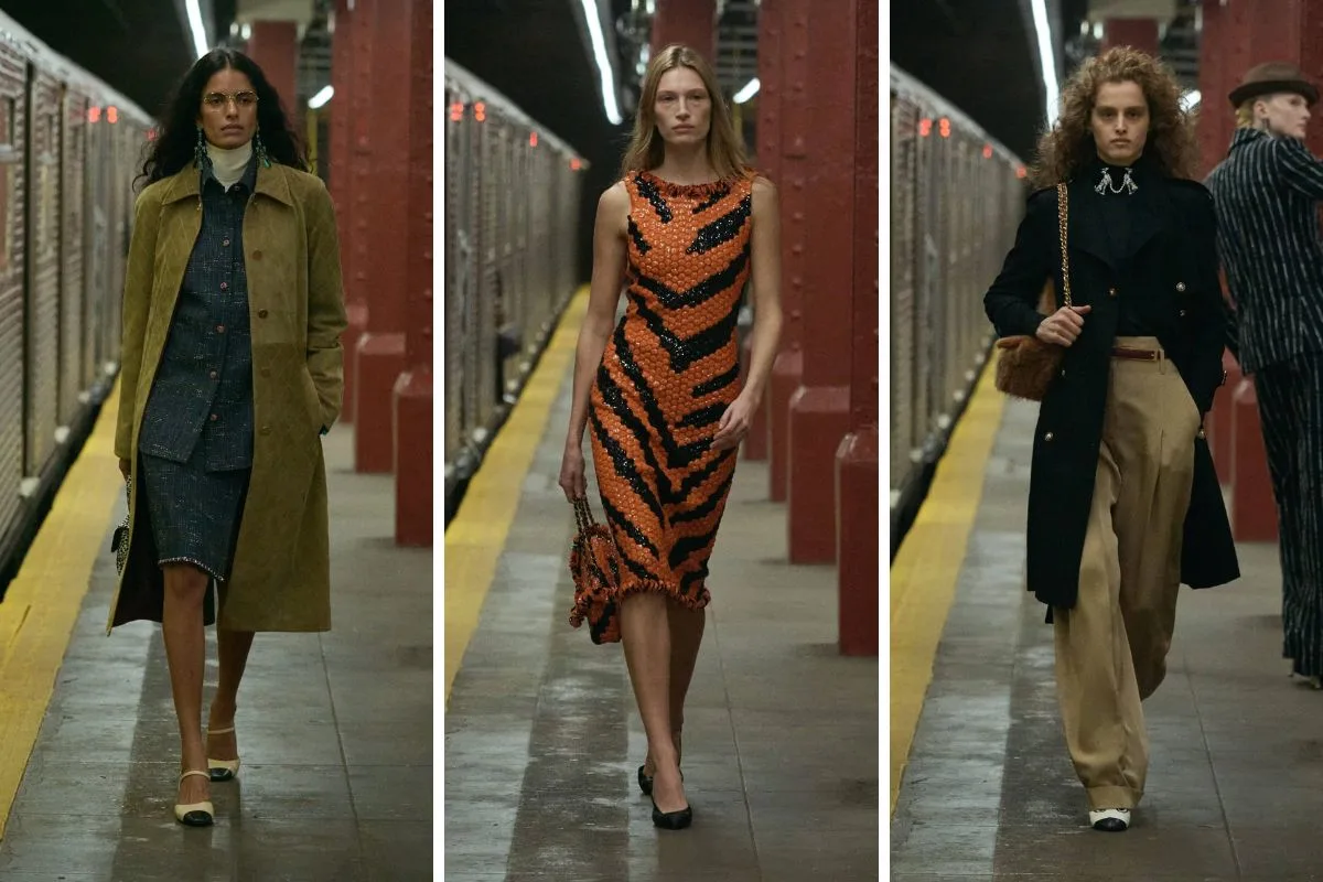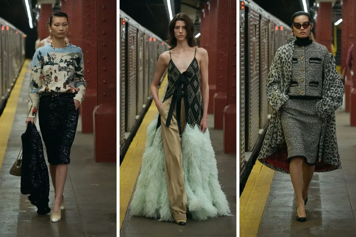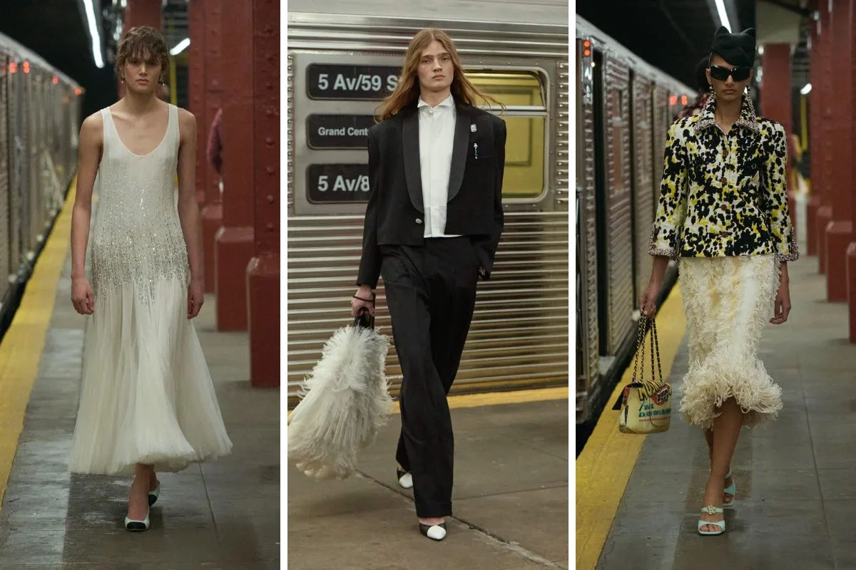 Η Chanel αυτή τη φορά προσγειώθηκε στη Νέα Υόρκη και η εκτός λειτουργίας αποβάθρα του σταθμού Bowery που χρησιμοποιείται συχνά ως κινηματογραφικό σκηνικό στο Lower East Side μεταμορφώθηκε στο πιο high-fashion runway. Εδώ παρουσιάστηκε η νέα συλλογή του Métiers d’Art 2026, η πρώτη του οίκου στην πόλη από το 2018. Είναι όμως και η πρώτη υπό τη δημιουργική διεύθυνση του Matthieu Blazy. Oversized κοστούμια, tweed αναφορές, denim-like silk, neon prints, ballgowns, flapper vibes και μια νέα urban ενέργεια που γράφει ήδη τη δική της ιστορία. Μια συλλογή που ενώνει τις couture λεπτομέρειες με την street αισθητική… Και αποδεικνύει πως το style ζει παντού – ακόμη και στις γραμμές μετρό. Το μετρό της Νέας Υόρκης μεταμορφώθηκε σε runway κι εμείς ξεχωρίσαμε τα πιο iconic looks.