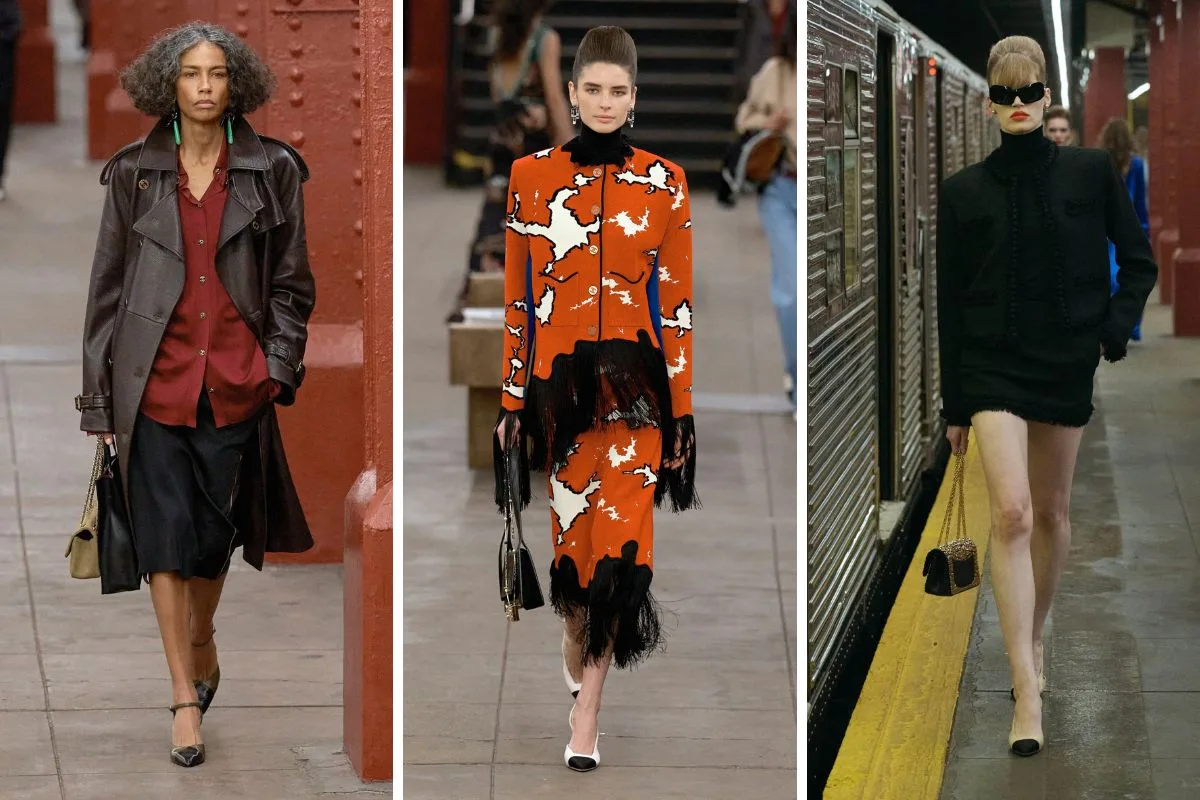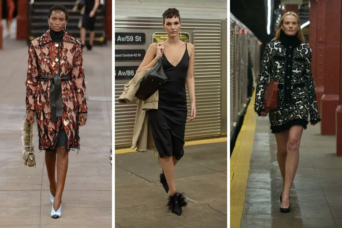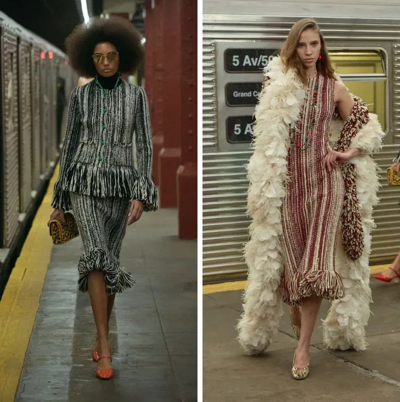 Η ατμόσφαιρα του show ήταν καθοριστική: Οι πασαρέλες δεν ήταν στατικές… Τα μοντέλα κατέβαιναν από τρένα, περπατούσαν πάνω στη γραμμή, διασταυρώνονταν σαν επιβάτες μιας νυχτερινής διαδρομής. Η “παλιά” Νέα Υόρκη – με πλακάκια, turnstiles, vintage payphones – απέκτησε νέο glamour. Η μετάβαση από τη “μελαγχολία της νύχτας” στην “ένεση μόδας” θύμιζε ταινία… Μια κινηματογραφική εμπειρία μάλλον παρά απλό runway.