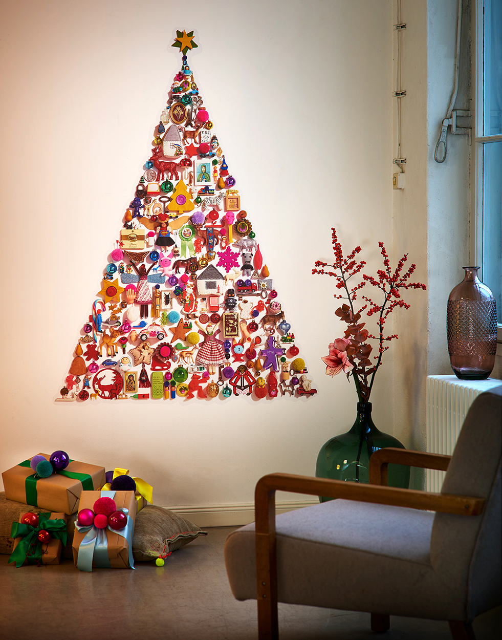 [bs_icon name=”glyphicon glyphicon-star”] Αν το σπίτι σου είναι μικρό κι έχεις παιδιά, μπορείς να αγοράσεις χριστουγεννιάτικα πάνινα στολίδια, και να δημιουργήσεις ένα αυτοσχέδιο δέντρο. Επίλεξε καρδούλες, αστεράκια και δεντράκια και να τα στερεώσεις σ’ ένα από τους τοίχους του σπιτιού σου. Μπορεί να είσαι ασημί ή χρυσές ή κόκκινες. Εξαρτάται από την υπόλοιπη διακόσμηση του σπιτιού. Ό, τι σου ταιριάζει καλύτερα!