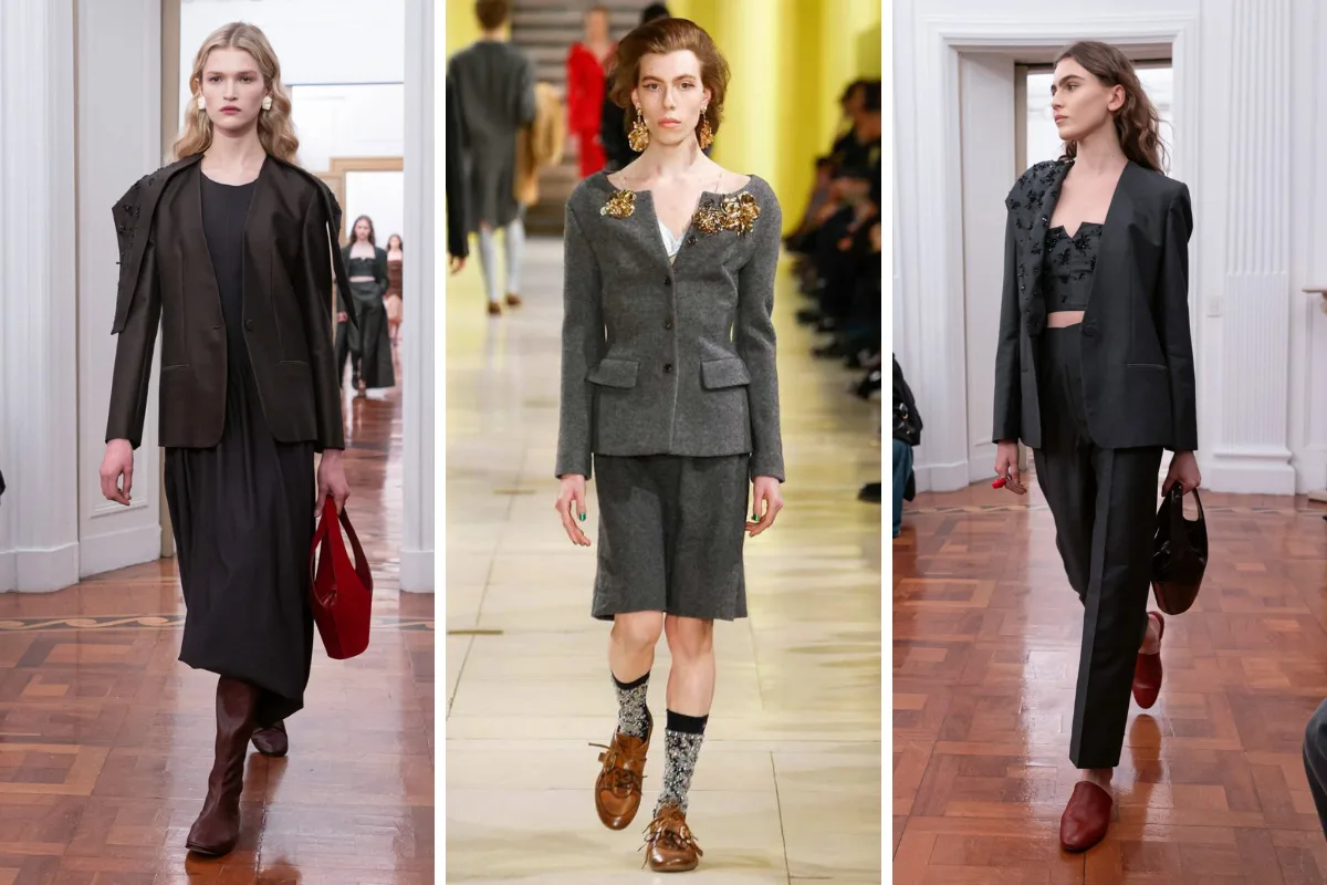 Tα collarless blazers ή neckline blazers είναι από τα πιο δυνατά fashion items της σεζόν. Αντί για το κλασικό ανδρικό πέτο-γιακά, έχουν λαιμόκοψη τύπου «crew» ή «round neckline», που αφήνει χώρο για layering με πουκάμισα, μεταξωτά top, με κασκόλ και φουλάρια… Και τα statement κοσμήματα αποκτούν πρωταγωνιστικό ρόλο, ενώ το σακάκι παραμένει διακριτικά κομψό. Κάποιοι οίκοι το προτείνουν σε oversized εκδοχές με ανδρικό tailoring, ενώ η Chanel επιμένει στο εμβληματικό της collarless tweed… Φέτος όμως, και η Carolina Herrera το θέλουν με πιο καθαρές, σχεδόν γεωμετρικές γραμμές.