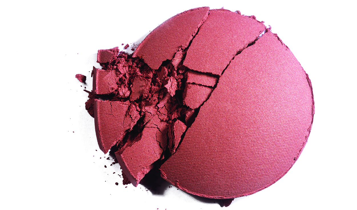Εφαρμόστε το highlighter στα σημεία που θέλετε να αναδείξετε – ζυγωματικά, μύτη και το εξωτερικό τόξο του φρυδιού. Περάστε το απαλό ροζ στα ζυγωματικά και χρησιμοποιήστε το μπεζ χρώμα για να σβήσετε το τελείωμα του ρουζ.