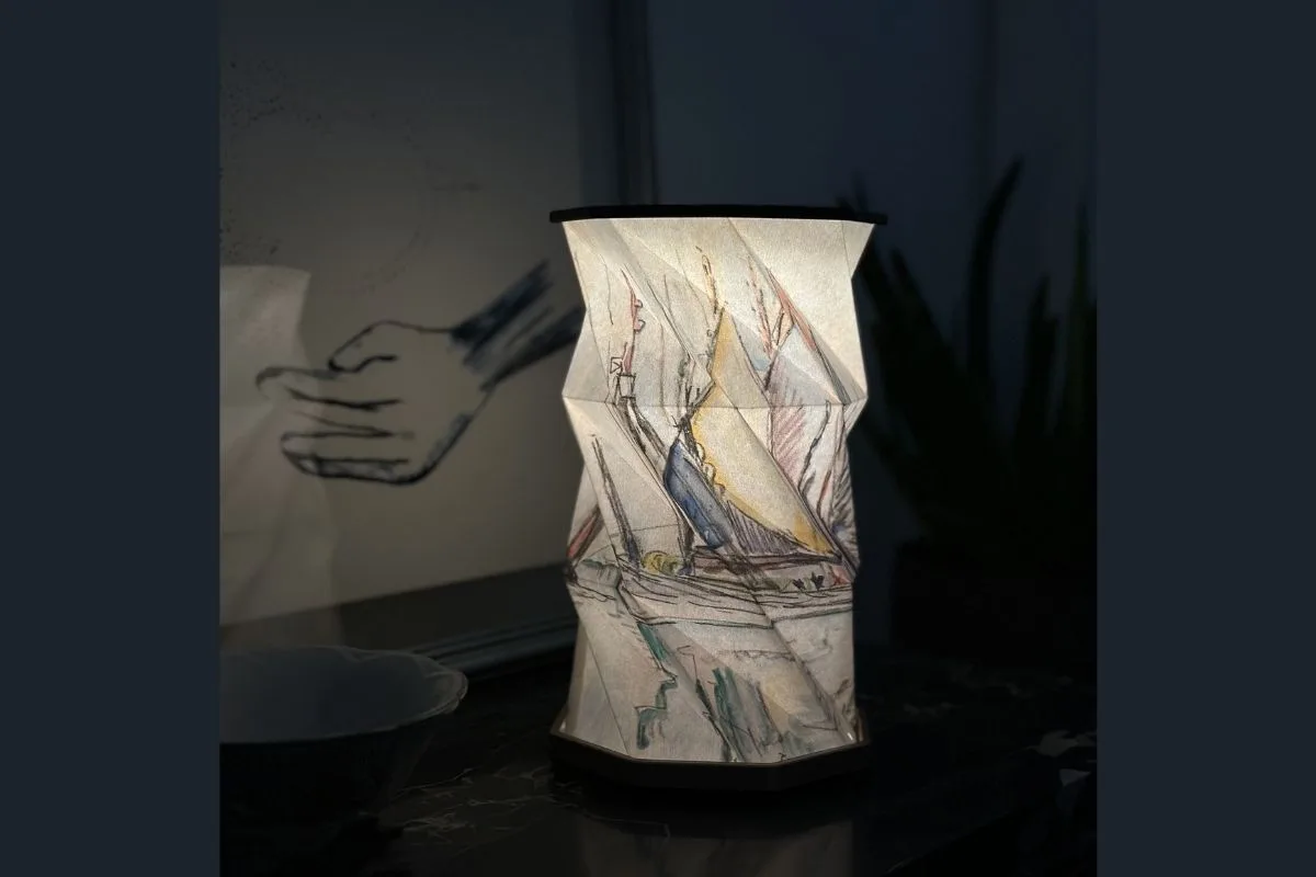 ♦ Styling tip: Ένας δίσκος που γίνεται centerpiece: Τοποθέτησέ τον με ένα κεραμικό, βιβλία τέχνης ή μικρά φυτά για cozy styling.♦ Και τα flip lamps, αυτά τα επιτραπέζια φωτιστικά με αναδιπλούμενο άνοιγμα και επαναφορτιζόμενο φως USB, αντλούν την έμπνευση τους από έργα διάσημων καλλιτεχνών. Το ένα είναι εμπνευσμένο από το έργο του Νίκου Χατζηκυριάκου-Γκίκα, «Καφασωτά και Σκιές», (λεπτομέρεια), από την Ελληνική Συλλογή. Το δεύτερο είναι εμπνευσμένο από το έργο του Paul Signac (1863-1935), «Καράβια στο Groix» (λεπτομέρεια), από τη Συλλογή του Παρισιού.Αυτές οι λάμπες φωτίζουν τον χώρο με την ίδια ευαισθησία που φωτίζει η τέχνη τις σκέψεις μας. Design, χρώμα, και έμπνευση σε ένα αντικείμενο που δεν χρειάζεται πολλά για να εντυπωσιάσει. Τιμή: 55€.