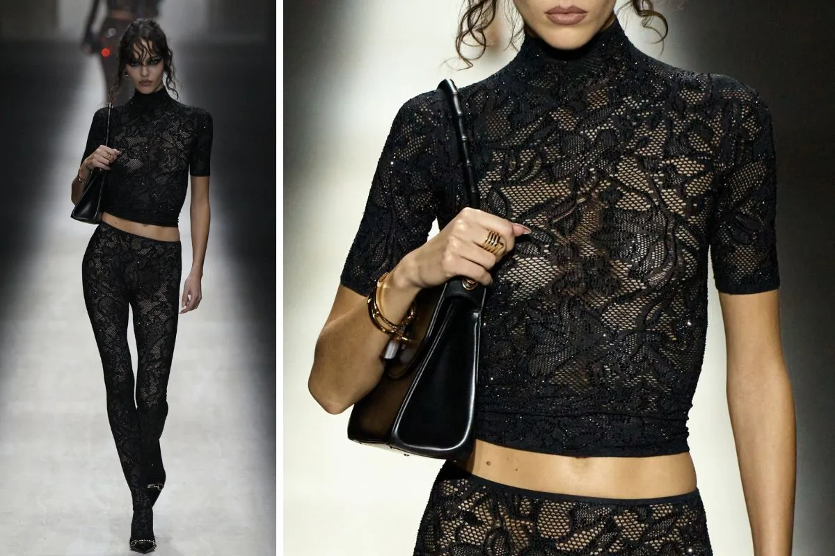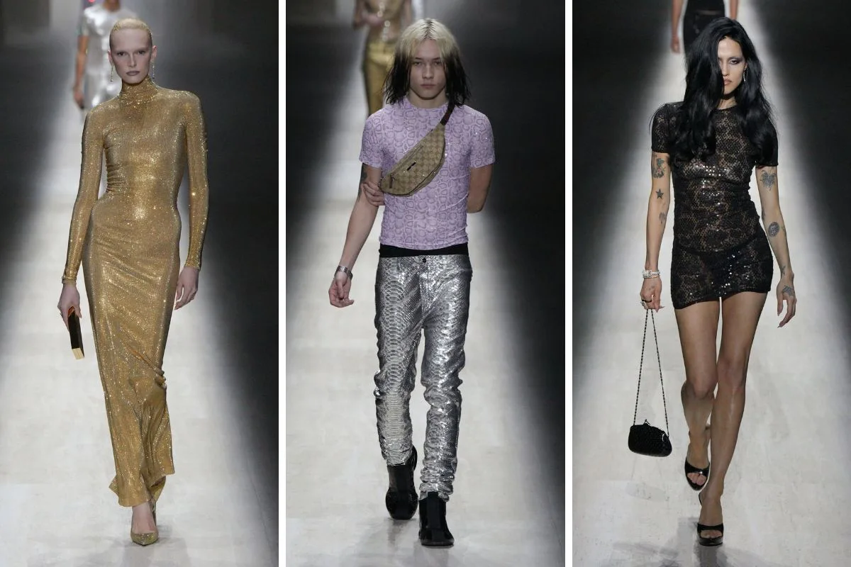 Το νέο πρόσωπο του οίκου Gucci κοιτάζει μπροστά, χωρίς να χάνει το DNA του… Φλερτ, τόλμη, άφοβη απόλαυση. Στα χέρια του Demna, αυτές οι έννοιες αποκτούν ξανά προσωπικότητα, ζωντάνια και σαγήνη. Ενέργεια. Πάθος. Διασκέδαση. Σέξι. Στο φινάλε, η εμφάνιση της Kate Moss στην πασαρέλα έδωσε μια iconic, σχεδόν μαγική κορύφωση… Φορώντας το πλέον εμβληματικό Gucci G-string (από τη συλλογή Άνοιξη 1997 του Tom Ford) τράβηξε όλα τα βλέμματα… Και η αίθουσα γέμισε ενθουσιασμό, χειροκροτήματα και ένα αίσθημα αξεπέραστης θρυλικής γοητείας… Σαν η μόδα και η pop κουλτούρα να ενώθηκαν σε μια μοναδική στιγμή ιστορίας.