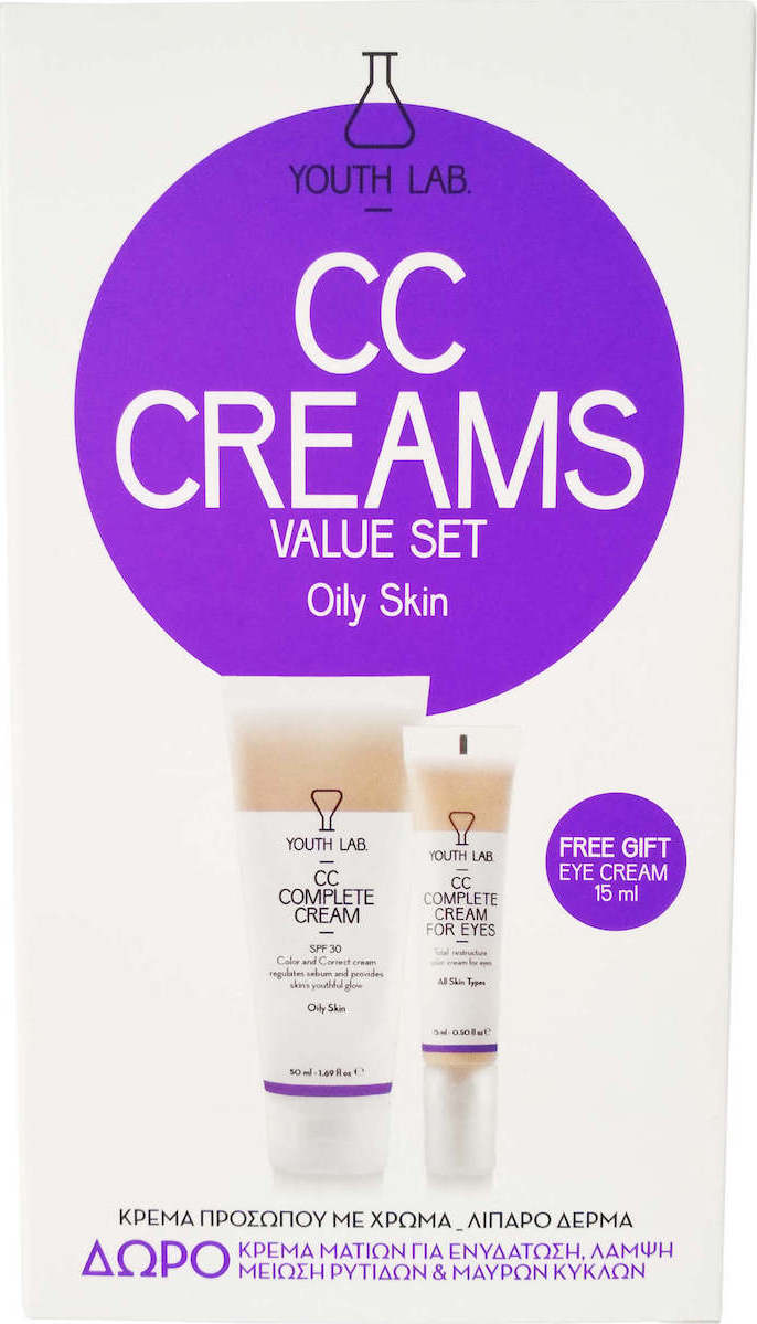 Το σετ περιέχει επίσης την YOUTH LAB. CC COMPLETE CREAM FOR EYES_All Skin Types. Μιλάμε για μία πολυδραστική κρέμα ματιών νέας τεχνολογίας, με φυσικές χρωστικές που εξασφαλίζει ενυδάτωση και ελαστικότητα στην περιοχή των ματιών, χαρίζει άμεση φωτεινότητα και λάμψη ενώ ταυτόχρονα μειώνει ορατά σημάδια γήρανσης και μαύρους κύκλους μέχρι και 52% σε 60 ημέρες.* Και πες της ότι είναι κατάλληλη και για άντρες! Αφού ο αδελφός σου, ο σύζυγός της, αντιμετωπίζει έντονο πρόβλημα μαύρων κύκλων. Αυτή η μαγική CC cream τους μειώνει και τους καλύπτει, δίνοντας ένα φυσικό αποτέλεσμα. More info: Το CC Complete Cream _ Normal / Dry Skin VALUE SET διατίθεται στην τιμή των €31,90. Όλα τα προϊόντα της YOUTH LAB. διατίθενται αποκλειστικά στην Κύπρο σε επιλεγμένα φαρμακεία.