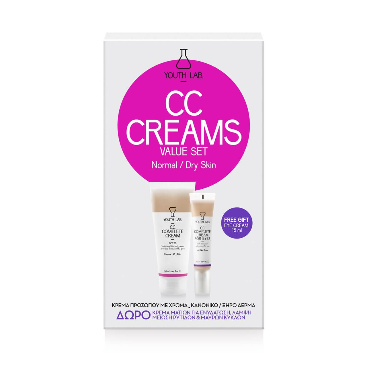 H νύφη σου, σε ρώτησε πρόσφατα για τη γνώμη που έχεις για τις CC creams και απέφυγες να της απαντήσεις γιατί κάτι σκάρωνες…. Τώρα, βρες την ευκαιρία να της δωρίσεις το VALUE SET με τις CC Complete Cream (Normal / Dry Skin) της Youth Lab. Το σετ περιλαμβάνει την CC Complete Cream SPF 30 _ Νormal /Dry Skin, μια κρέμα με νέας τεχνολογίας καλυπτική σύνθεση, για την ολική αναδόμηση του δέρματος, με αντιηλιακή προστασία. Και είναι κατάλληλη για το κανονικό / ξηρό δέρμα της.
