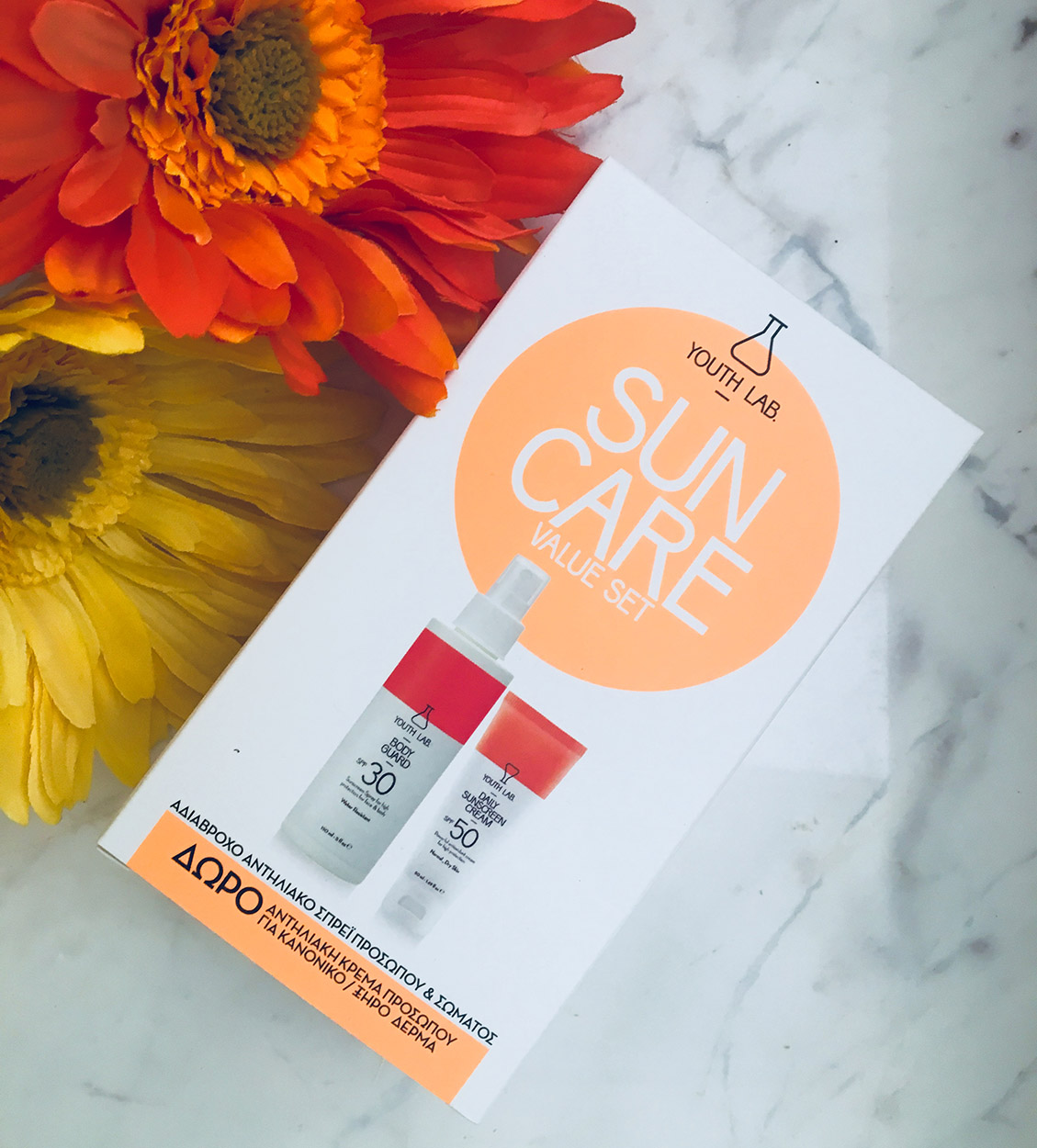 Αντηλιακά σετ… value for money! Περιέχουν το αδιάβροχο αντηλιακό σπρέι προσώπου & σώματος Body Guard με SPF30, της Youth Lab, κατάλληλο για κάθε τύπο δέρματος, για αποτελεσματική προστασία του όλη μέρα. Το σετ περιλαμβάνει και την αντηλιακή κρέμα προσώπου Daily Sunscreen Cream με SPF50 για υψηλή προστασία. Θα το βρείτε στα φαρμακεία.