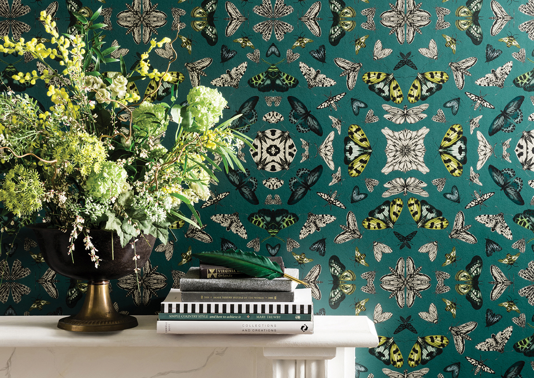 Αυτό το παιχνιδιάρικο design ταπετσαρίας τοίχου, παρουσιάζει πολύχρωμα έντομα και πεταλούδες δημιουργώντας ένα εντυπωσιακό καλειδοσκόπιο.