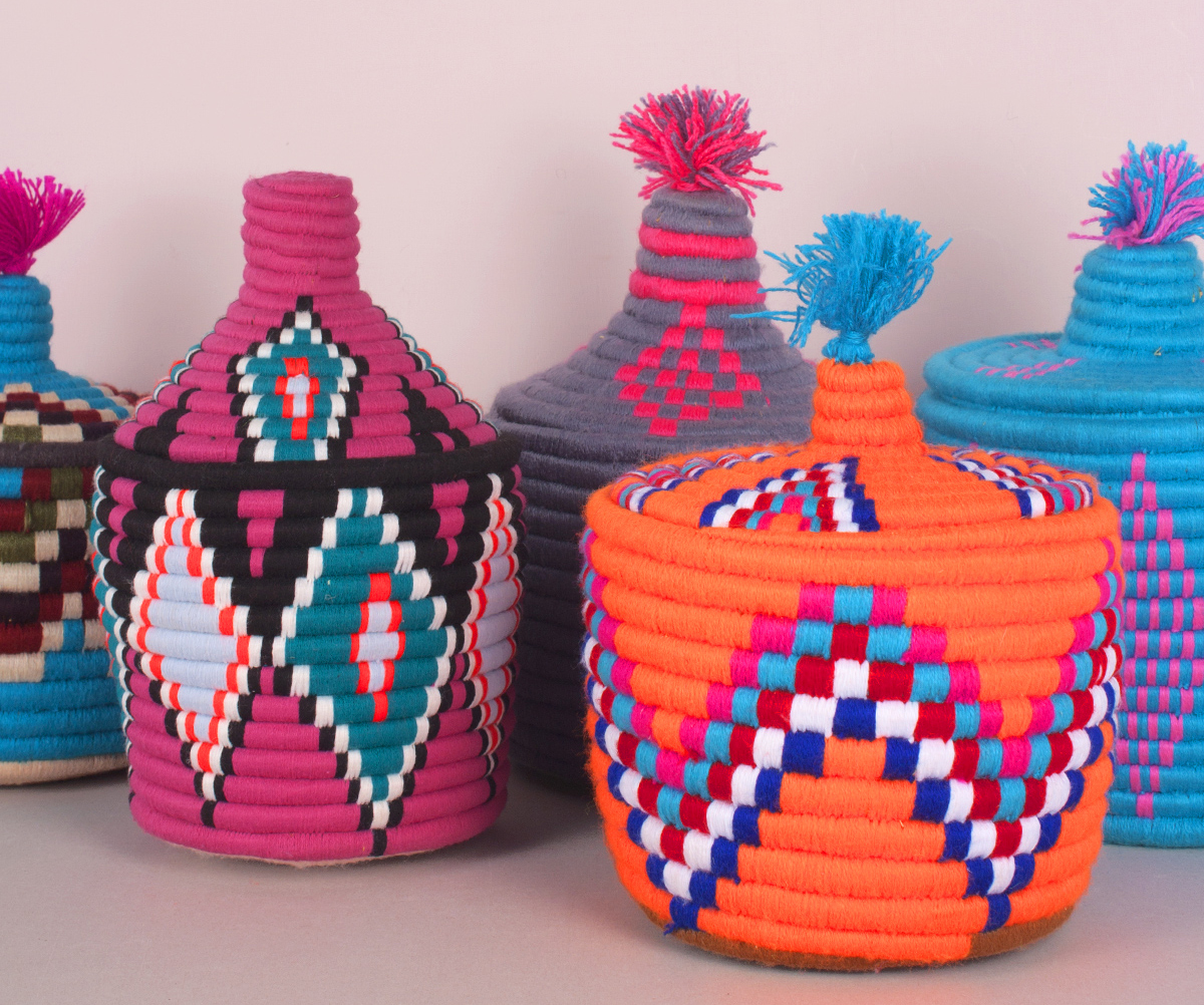 Πολύχρωμα, με έντονες αποχρώσεις, τα καλάθια Berber, είναι ιδανικά για το ψωμί και φτιάχνονται στο χέρι από τη φυλή Berber στο Μαρόκο. Από φυσική ράφια τυλιγμένη με βαμμένο μαλλί, έχουν μια φούντα από πολύχρωμο μαλλί στο καπάκι τους, που τους προσθέτει μια έξτρα boho… νότα.
