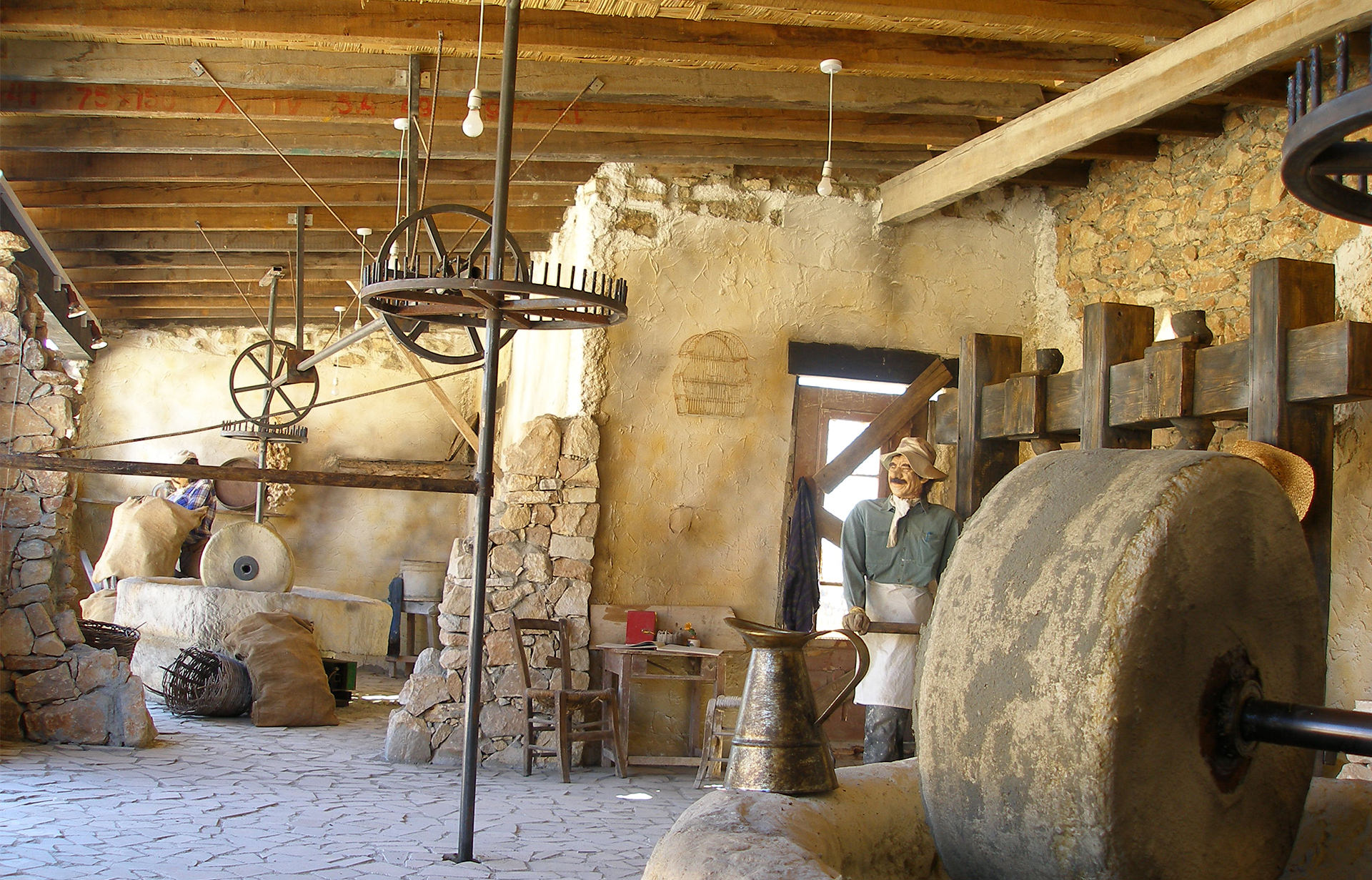 Ξεκινήστε την εμπειρία από το «Παλιό Ελαιοτριβείο»: Εδώ, πατώντας ένα κουμπί, τίθεται σε λειτουργία το ελαιοτριβείο, το νερό αρχίζει να τρέχει στο νερόμυλο κι έτσι ενεργοποιεί τη μυλόπετρα που γυρίζει και συνθλίβει τις ελιές. Ταυτόχρονα, χάρη στην τεχνολογία θα σας δίνονται επεξηγήσεις για το κάθε στάδιο. Πιο πέρα, κούκλες μυλωνάδες σφίγγουν τα ζεμπίλια στις πρέσες και ξεφορτώνουν τις γεμάτες ελιές σακούλες, ενώ ένα συμπαθητικό γαϊδουράκι γυρίζει την άλλη μυλόπετρα. Στη συνέχεια θα δείτε τα υπόλοιπα εκθέματα του πάρκου, που είναι στατικά, και περιλαμβάνουν επαγγέλματα συναφή με την ελιά. Για παράδειγμα, ο λαδοπούλης που γύριζε από χωριό σε χωριό με το γαϊδουράκι του φορτωμένο νταμιτζάνες γεμάτες από λάδι, ο σαπουνοποιός (είναι γνωστό ότι από την αρχαιότητα οι Έλληνες χρησιμοποιούσαν το ελαιόλαδο για την υγιεινή και τη φροντίδα του σώματος), αλλά και ο ξυλουργός (το ξύλο ελιάς είναι ανθεκτικό και χρησιμοποιήθηκε για την κατασκευή γεωργοκτηνοτροφικών εργαλείων, επίπλων, κατασκευών, κομψοτεχνημάτων κ.λ.π.). Στο πάρκο υπάρχουν και αναπαραστάσεις από ανασκαφές στα Κούκλια και άλλες αρχαίες μεθόδους έκθλιψης του καρπού της ελιάς. Θα δείτε επίσης και διάφορες γεωργικές δραστηριότητες όπως το μάζεμα της ελιάς, το όργωμα, η μεταφορά των ελιών στο μύλο με κάρο, ελιόκηπος, βοτανόκηπος, το δέντρο της αθανασίας κλπ. Τα συνοδευτικά κείμενα, αποτέλεσμα μακροχρόνιας μελέτης, δίνουν σύντομες ενδιαφέρουσες πληροφορίες για το κάθε θέμα. Στο καφεστιατόριο που λειτουργεί στο χώρο, εκτός από βιολογικά ποτά και πεντανόστιμα φαγητά, υπάρχει μόνιμη έκθεση ασπρόμαυρης φωτογραφίας με απεικονίσεις περασμένων εποχών. Ακόμα θα παρακολουθήσετε φιλμάκι για τα 60.000 χρόνια πολιτισμού της ελιάς, ενώ τα παιδιά θα χαρούν τον παιχνιδότοπο, την καλλιτεχνική γωνιά και τις βόλτες με τα γαϊδουράκια.