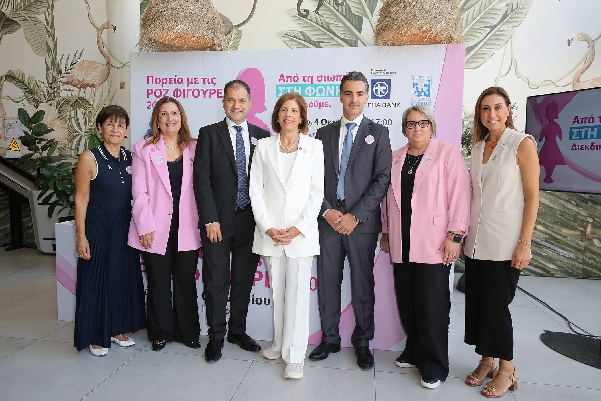 Στον χαιρετισμό του, ο CEO της Alpha Bank Κύπρου Μίλτος Μιχαηλάς, ανέφερε: «Για την Alpha Bank Κύπρου, η φετινή χρονιά είναι ξεχωριστή. Από φέτος, υιοθετούμε επίσημα την Πορεία, κορυφώνοντας μια σχέση συνεργασίας με την Europa Donna που χτίστηκε σταθερά τα προηγούμενα χρόνια. Η απόφασή μας αυτή δεν είναι μια τυπική στήριξη. Είναι δέσμευση ότι θέλουμε να είμαστε μέρος της κοινωνικής αλλαγής. Ότι θέλουμε να βάλουμε τη φωνή μας δίπλα σε εκείνες που διεκδικούν και να συμβάλουμε με τον τρόπο μας σε ένα καλύτερο μέλλον». Ο κ. Μιχαηλάς σημείωσε επίσης πως φέτος η Πορεία με τις Ροζ Φιγούρες, ξεκινά από το ιστορικό ΓΣΠ, έναν χώρο γεμάτο μνήμες και θα καταλήξει στο κτίριο της Alpha Bank Κύπρου, στην οδό Στυλιανού Λένα. «Για εμάς, ο τερματισμός αυτός έχει ισχυρό συμβολισμό. Θέλουμε το σπίτι μας να είναι ανοιχτό στην κοινωνία. Να είναι προορισμός στήριξης και ελπίδας. Να στείλει το μήνυμα ότι μια Τράπεζα μπορεί και πρέπει να είναι κάτι περισσότερο από οικονομικός θεσμός· να είναι φορέας κοινωνικής ευθύνης και συλλογικής δύναμης».