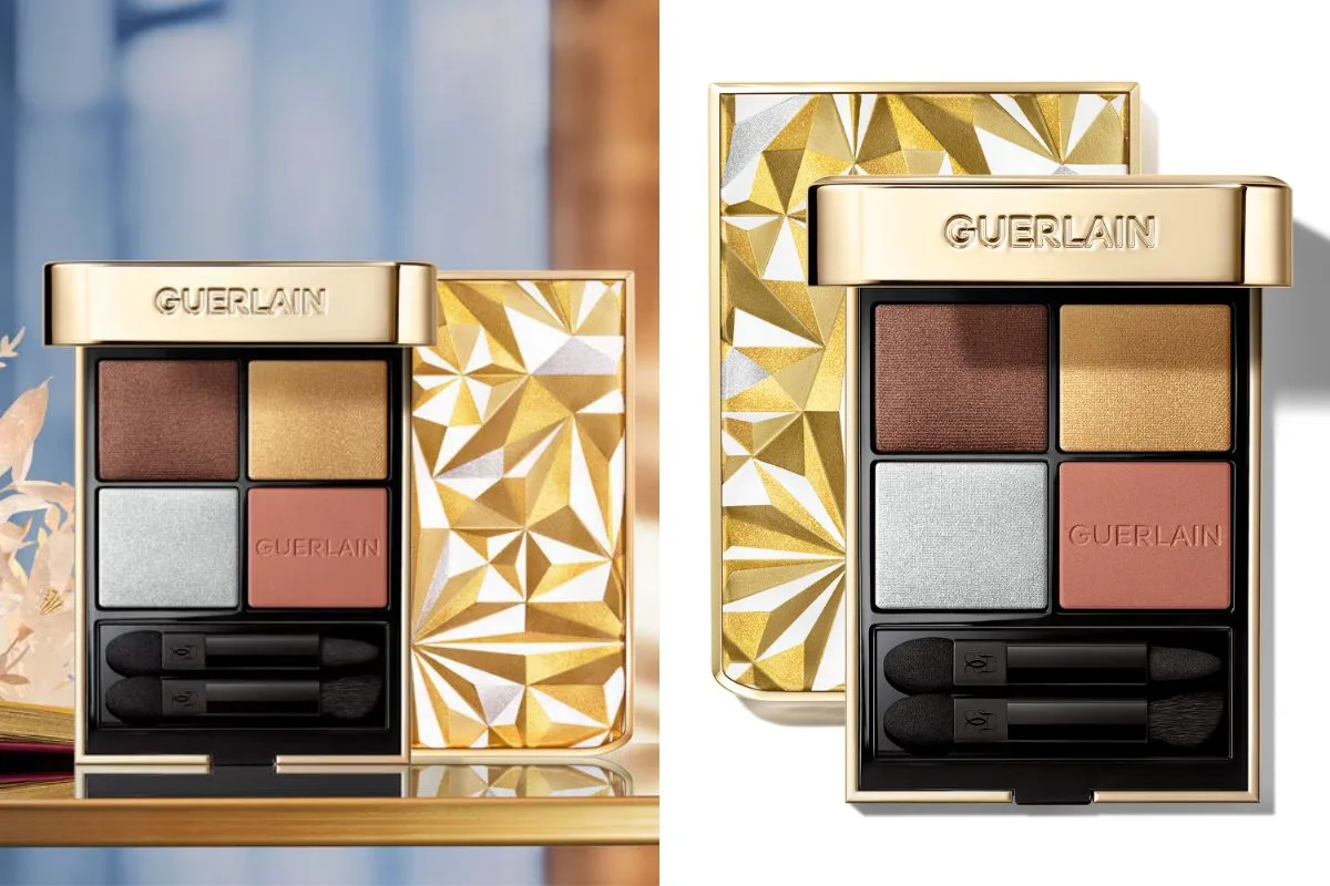 Η τετραπλή παλέτα σκιών Ombres G Stellar Glow (520) της Guerlain επανασχεδιάστηκε φέτος σε μια μοναδική, γιορτινή και φωτεινή αρμονία. Η εξαιρετική υφή τους, εμπλουτισμένη με έντονες χρωστικές υψηλής απόδοσης, προσφέρει πολυτελές χρώμα με μεγάλη διάρκεια. Δύο πολύτιμες αποχρώσεις – χρυσό και ασημί με μεταλλικό τελείωμα – συνδυάζονται με ένα σατινέ καφέ και ένα βαθύ nude.