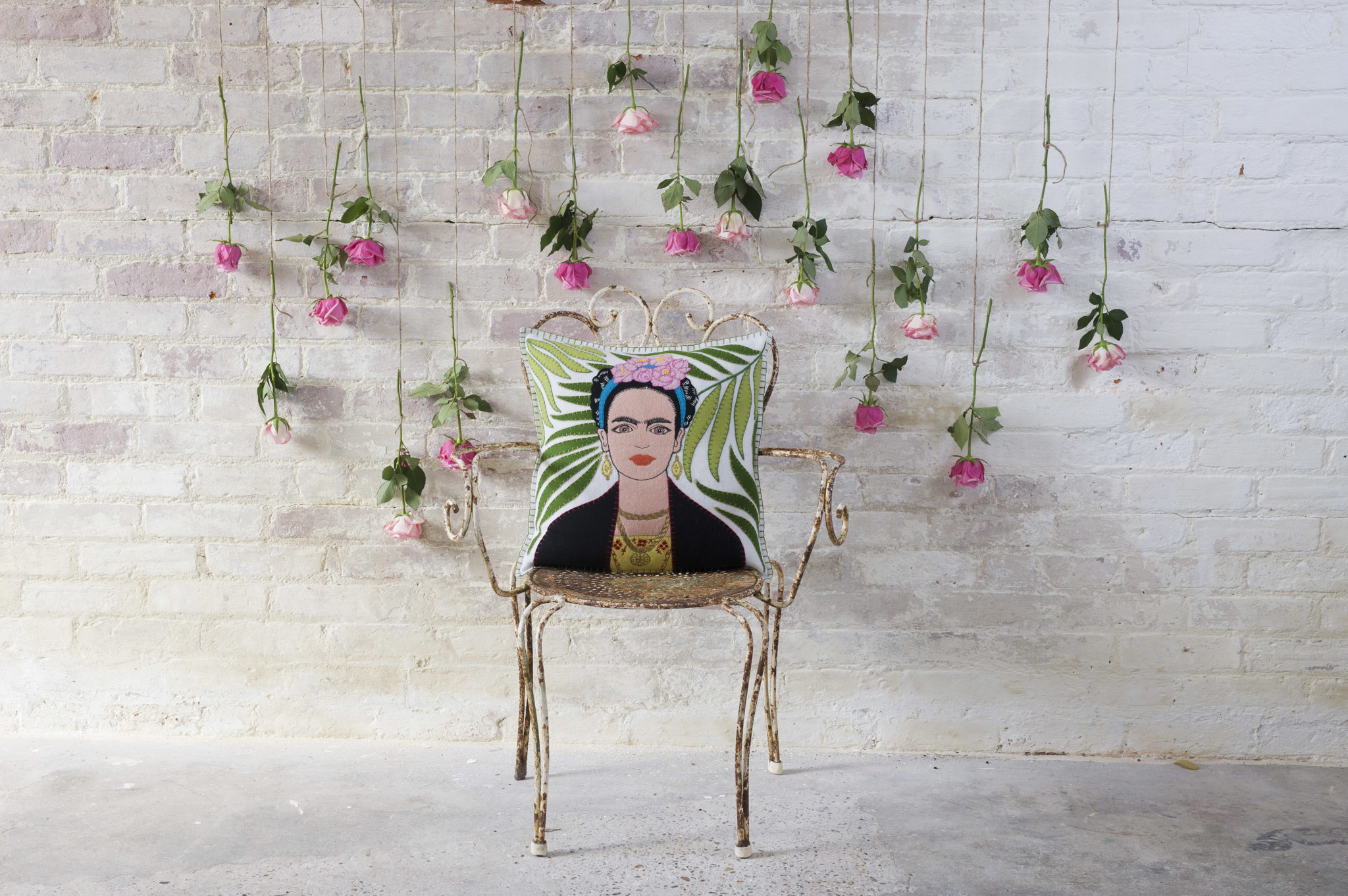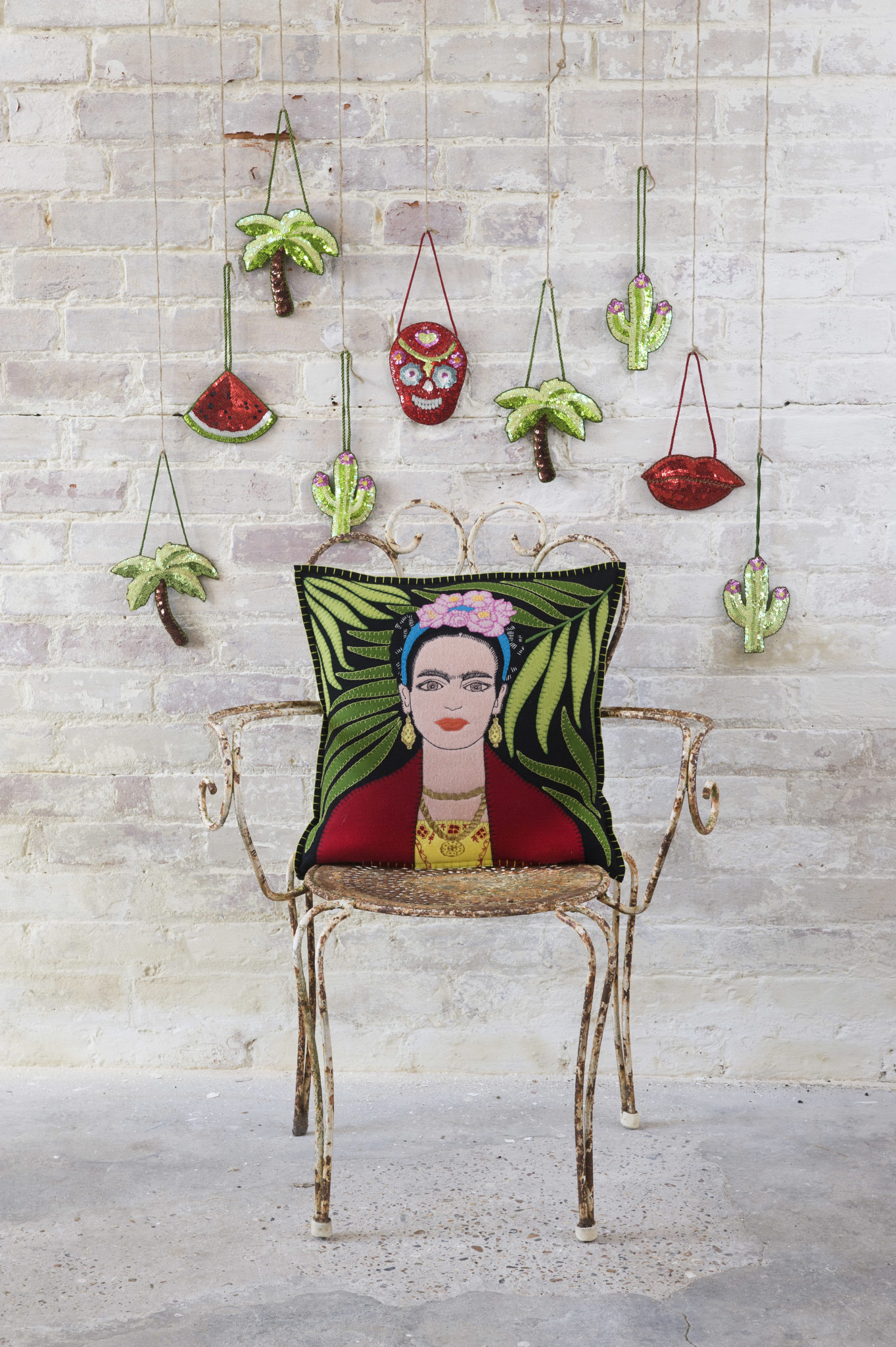 Πρόκειται για μια συλλογή που αποδεικνύουν πόσο πανέμορφο μπορεί να γίνει ένα χειροποίητο κέντημα πάνω σε μάλλινο ύφασμα. Κάθε μαξιλαράκι απεικονίζει την διάσημη καλλιτέχνη με το παραδοσιακό μεξικάνικο φόρεμα, με τα πλεγμένα μαλλιά της, που κάθεται πάνω σε ένα φόντο με ολοζώντανα, πράσινα φύλλα φοινικιάς. Το κάθε μαξιλάρι κλείνει με πράσινες βελονιές και στερεώνεται στην πλάτη του με δύο μαργαριταρένια κουμπιά.