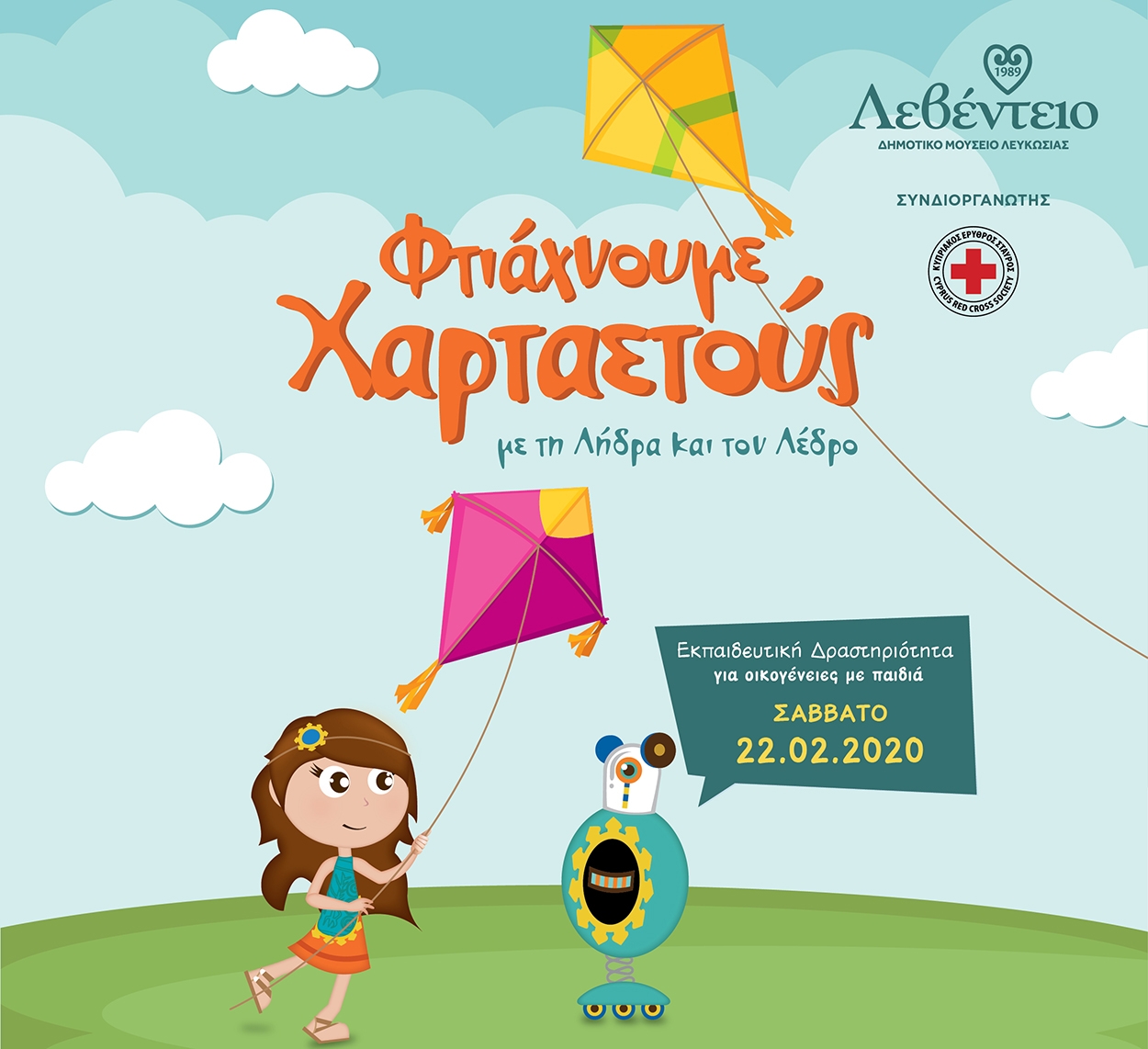 Ψάχνεις για δημιουργικές στιγμές παρέα με τα παιδιά σου, για τα Σαββατοκύριακα; Ε, λοιπόν, σου βρήκαμε την πιο εντυπωσιακή ιδέα για το ερχόμενο Σάββατο! Έχουμε και λέμε: Το Λεβέντειο Δημοτικό Μουσείο Λευκωσίας σε συνεργασία με τον Κυπριακό Ερυθρό Σταυρό – Κλάδο Λευκωσίας, διοργανώνει για ακόμη μια χρονιά την εκπαιδευτική δραστηριότητα για οικογένειες με παιδιά «Φτιάχνουμε Χαρταετούς με τη Λήδρα και τον Λέδρο». Επομένως, αν είστε γιαγιάδες, παππούδες, και γονείς, πάρτε τα παιδιά σας για να συμμετάσχετε στην αναβίωση του παραδοσιακού πετασιού (χαρταετού). Πότε; Το Σάββατο 22 Φεβρουαρίου 2020 στις 14:30 το απόγευμα. Πού; Μα ασφαλώς, στους χώρους του Λεβέντειου Δημοτικού Μουσείου Λευκωσίας.
