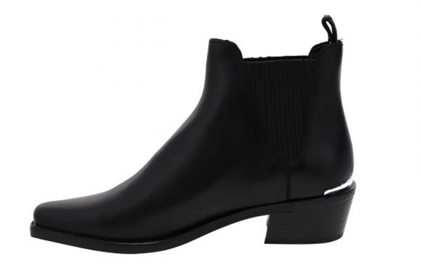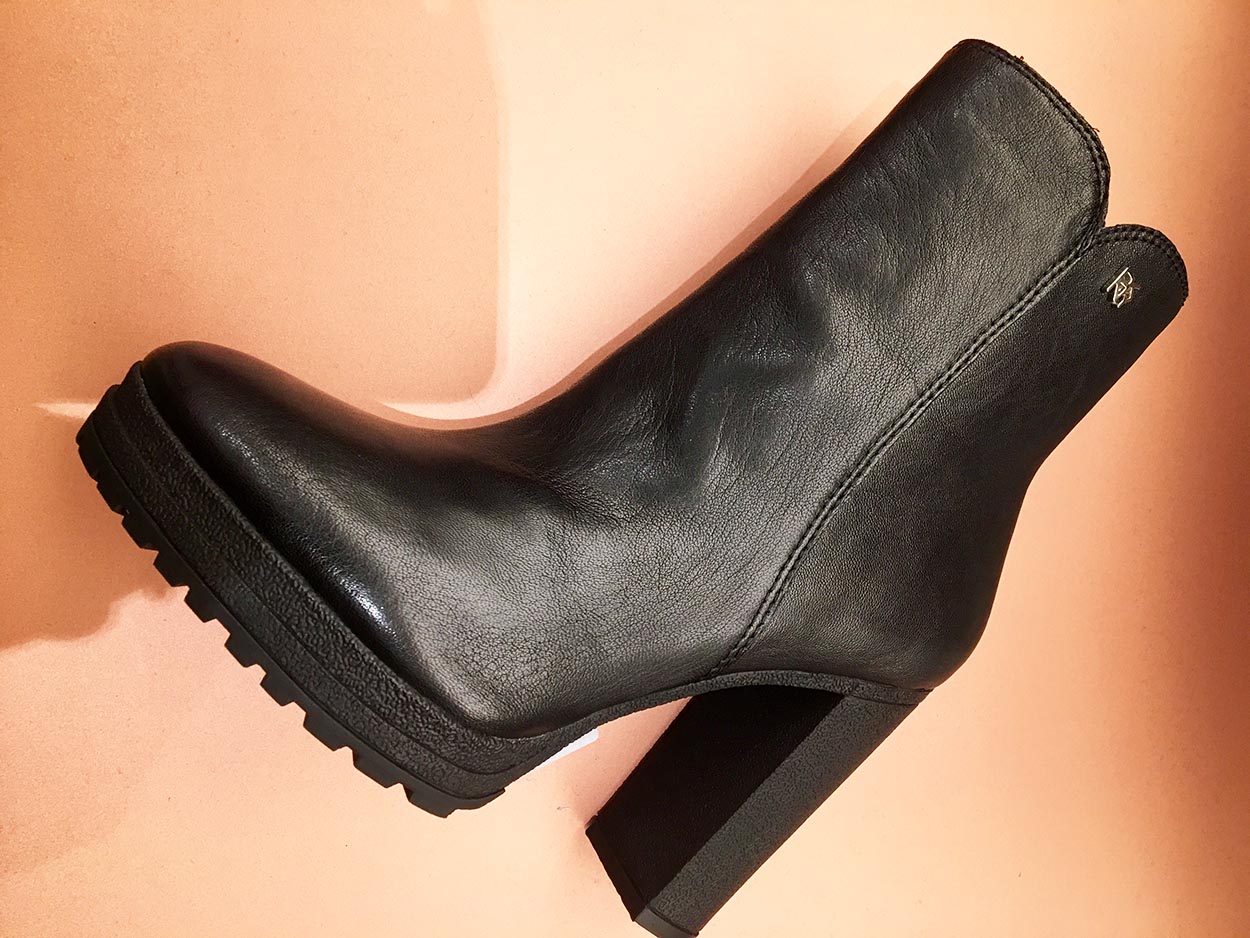 Tέλος, γι’ αυτό το σύνολο με το printed παντελόνι επιλέξαμε τα TESSI – τα slip on bootie, τα μαύρα μποτάκια δηλαδή, της DKNY. Έχουν χοντρό τακούνι (90 MM) και τρακτερωτή σόλα, που είναι και κομψά και αναπαυτικά. Ότι καλύτερο δηλαδή, αν θέλεις να είσαι στυλάτη απ’ το πρωί ως το βράδυ.