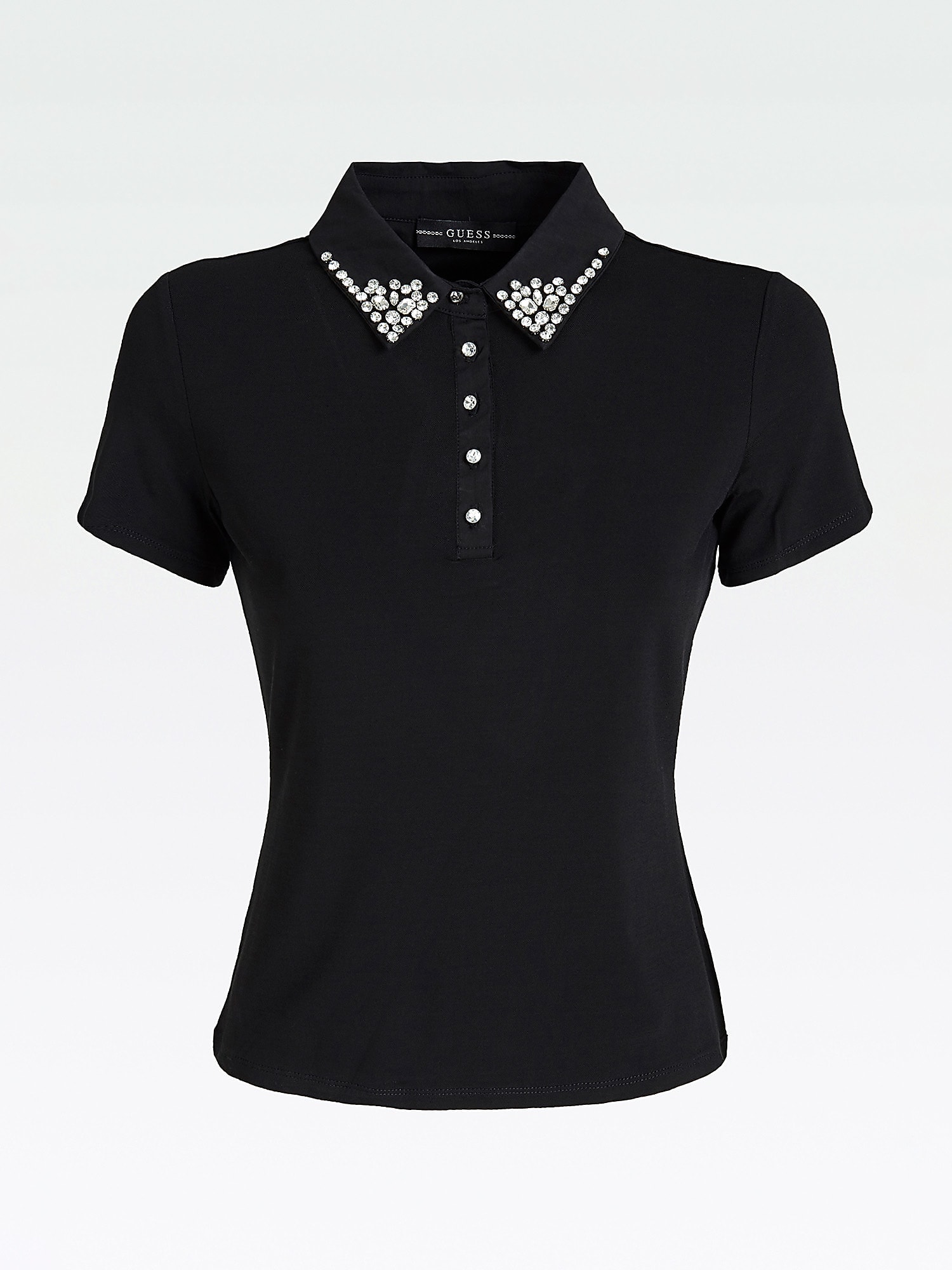 Το συνδυάσαμε με κομψό stretch μπλουζάκι με διακοσμητικές πέτρες στο γιακά, της Guess, επίσης από το Collective.