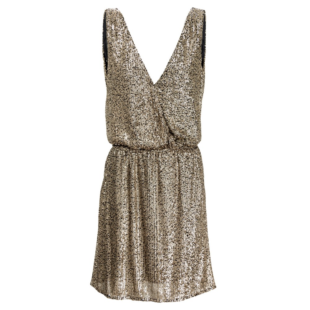Η Ιφιγένεια φόρεσε κρουαζέ φορεματάκι, της LA DOLLS, σε χρυσή απόχρωση με κεντημένες παγιέτες, επίσης από το Collective. Για θηλυκές λαμπερές εμφανίσεις!