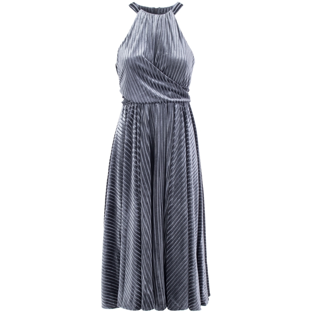 Σ’ αυτή τη φωτογραφία, η Έλενα φοράει midi βελούδινο φόρεμα της Ted Baker. Η πλισέ, άνετη φούστα του δημιουργεί κίνηση, κι έχει μια κομψή λεπτομέρεια στη μέση, που δένει πίσω.