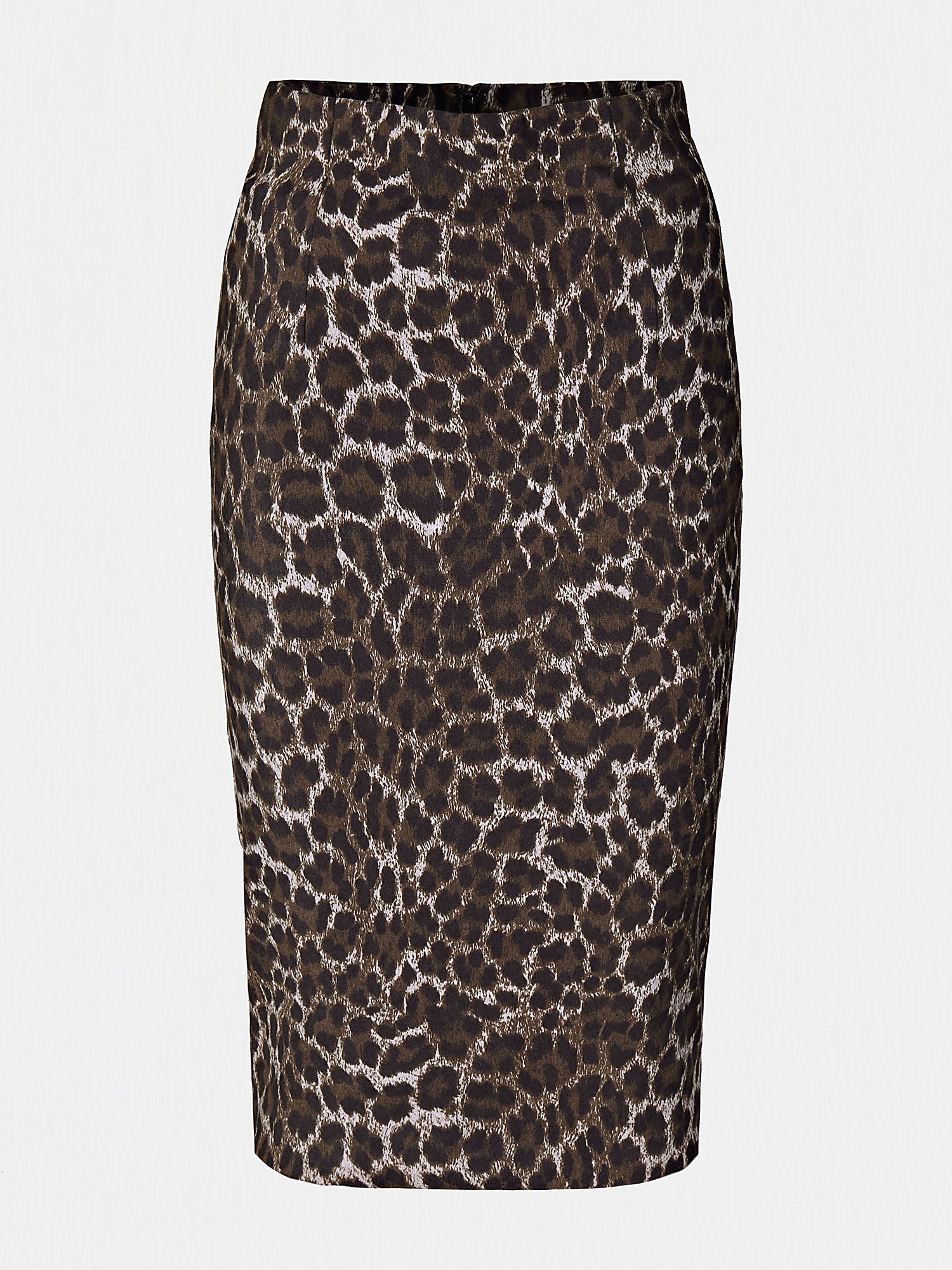 Σ’ αυτή τη λήψη, η Ιφιγένεια φορά στενή φούστα με animal prints, σε ίσια γραμμή, της Guess.