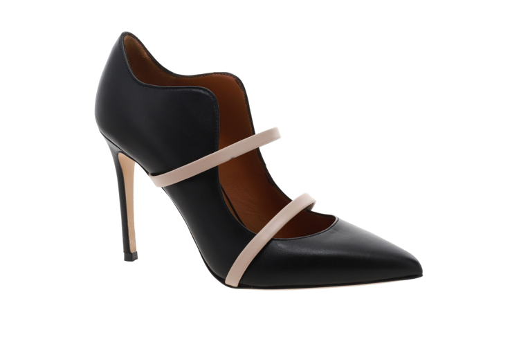 Οι super κομψές μαύρες γόβες της, με τα μπεζ λουράκια που αγκαλιάζουν το πόδι, έχουν την υπογραφή της Haralas.