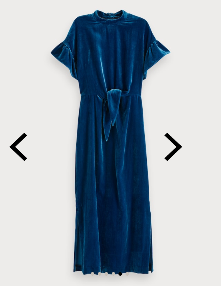 Η Έλενα φορά βελούδινο μίντι φόρεμα στο αγαπημένο της χρώμα, το sapphire blue, από τη συλλογή του οίκου Scotch & Soda.