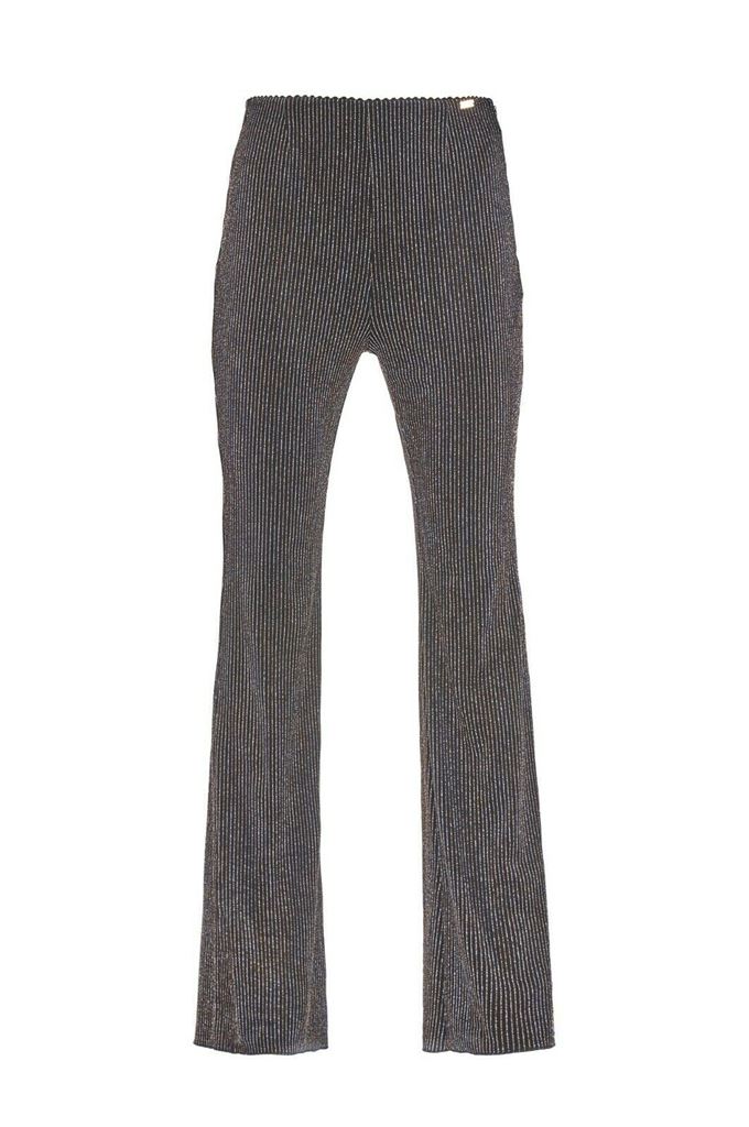 Το lurex παντελόνι σε εφαρμοστή bootcut γραμμή είναι ψηλόμεσο, είναι άνετο και θηλυκό.