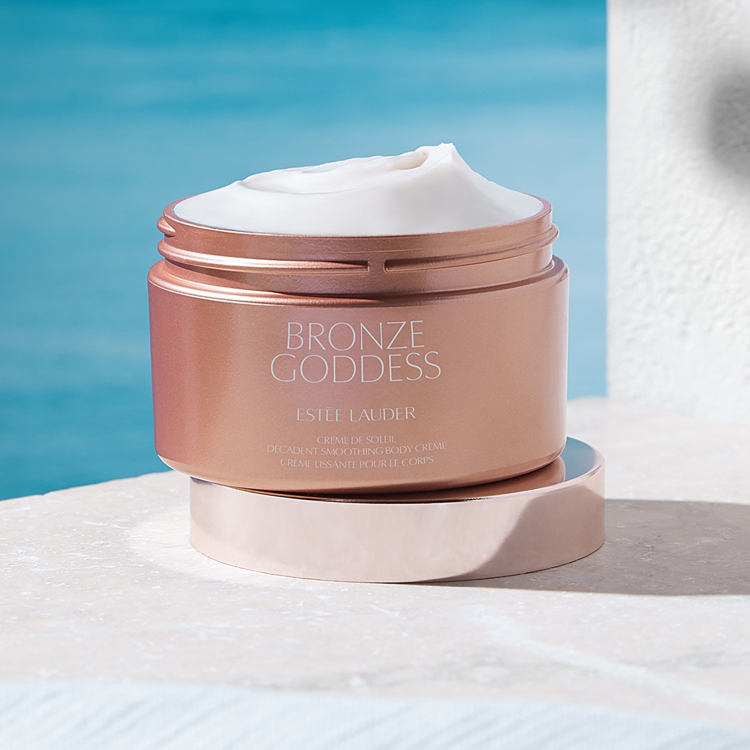 Αυτά τα αισθησιακά, ηλιόλουστα αρώματα και τα εντυπωσιακά προϊόντα για το πρόσωπο και σώμα σε μεταφέρουν σε μια καλοκαιρινή ουτοπία προσφέροντας μια λάμψη για όλο το χρόνο. Η λαχταριστή, διάσημη Bronze Goddess Collection εκπέμπει την αίγλη μιας ατελείωτης καλοκαιρινής απόδρασης… Με πολυτελείς ενδείξεις στις συσκευασίες της, εμπνευσμένες από τα καταγάλανα νερά και το χρυσό φως του ήλιου της Ριβιέρας.