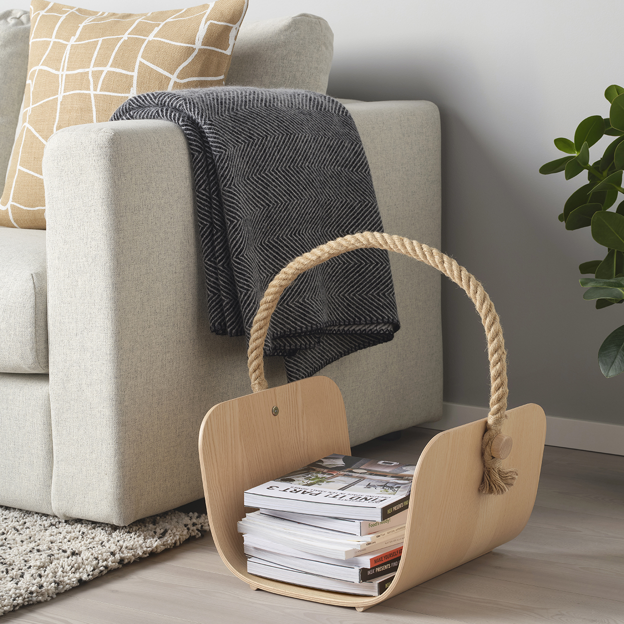 Υπάρχει όμως και κάτι ακόμα… Σίγουρα, μπορεί να έχεις πάρα πολλά ψάθινα καλάθια, αλλά σ’ αυτό το minimal καλάθι με το χερούλι από σχοινί, σίγουρα δεν θα μπορέσεις να αντισταθείς… Προσωπικά, δεν μπόρεσα να του αντισταθώ, με καμία δύναμη. Και τελικά έγινε η τέλεια «θήκη» που φιλοξενεί τα πάντα! Τώρα πια μπορώ να τακτοποιήσω στην «αγκαλιά» του τα βιβλία που θέλω να έχω κοντά μου, τα χνουδωτά ριχτάρια, ακόμα και τα ξύλα για το τζάκι … Θα μπορούσα βέβαια, να σκεφτώ κι ένα εκατομμύριο άλλες χρήσεις του. Τι λες; Εσύ πως θα το χρησιμοποιήσεις;