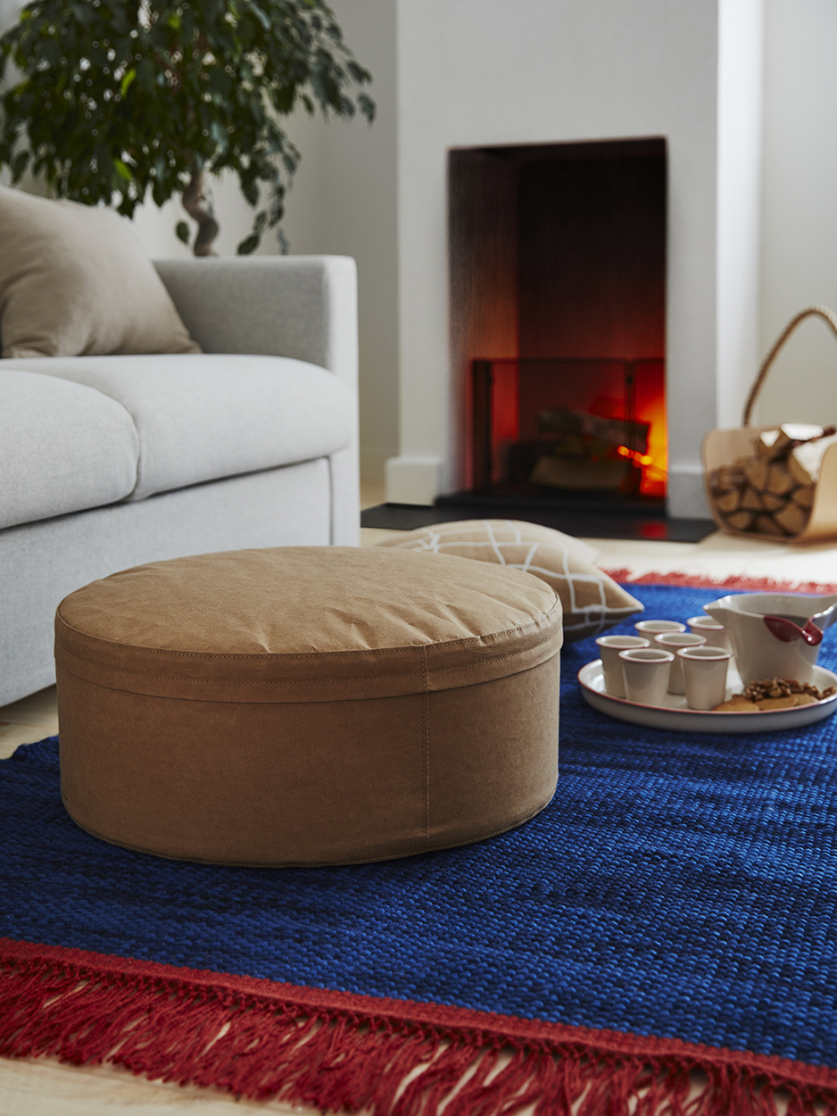 Εάν όμως, χρειαστείς περισσότερα καθίσματα, το στρογγυλό πουφ της σειράς VÄRMER έφθασε για να σου δώσει τη λύση… Προσωπικά είναι ένα από τα αγαπημένα μου κομμάτια, γιατί μου έκανε εντύπωση το υλικό της κατασκευής του, που μοιάζει με δέρμα. «Αυτό το ανθεκτικό υλικό μιλάει για τον εαυτό του και θα αλλάξει με την πάροδο του χρόνου… Και θα διηγείται την ιστορία του για το πώς έχει χρησιμοποιηθεί», εξηγούν οι Fagers, οι designers της Σουηδικής ομάδας.