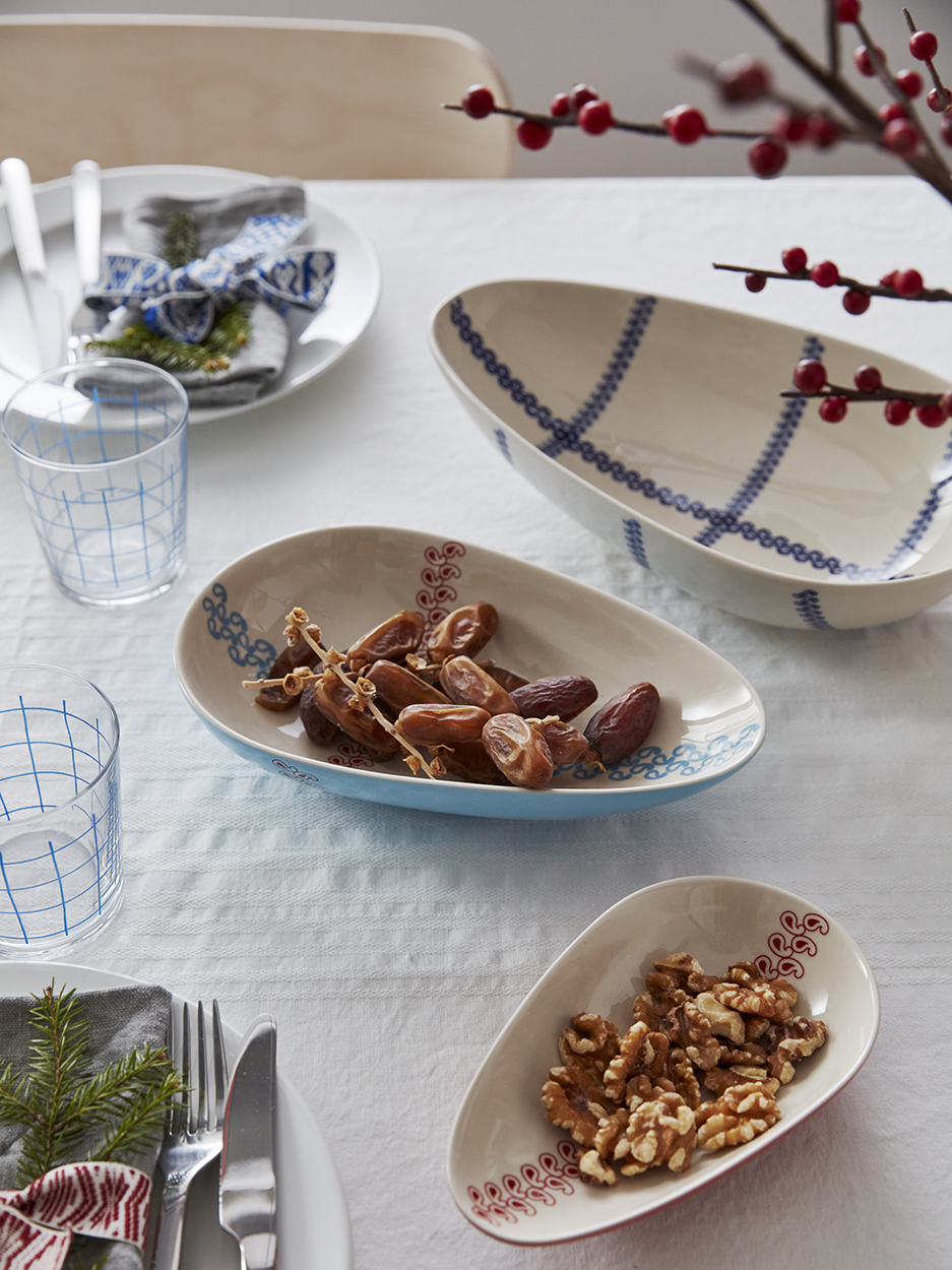 Όσο για τα τρία χαριτωμένα Stoneware (πήλινα) μπολάκια, με το ιδιαίτερο σχήμα του αβοκάντο, έχουν το δικό τους story! Το ντουέτο των σχεδιαστών από την Κένυα, εμπνεύστηκε από την πορσελάνη των Σουαχίλι και τα Κενυάτικα υφάσματα Kanga όταν σχεδίαζαν αυτά τα μπολ για να τα χρησιμοποιούμε για τα σνακ μας. Κι αν δεν το πρόσεξες, η διακόσμηση τους απεικονίζει cashew nuts, που συμβολίζουν την καλή τύχη! Οι σχεδιαστές τους αναφέρουν χαρακτηριστικά: «Κατά τη χειμερινή εορταστική περίοδο, στην Κένυα έχουμε ζέστη… Αυτή είναι και η περίοδος συγκομιδής των αβοκάντο, που αποτέλεσε πηγή έμπνευσης για το σχήμα των μπολ.