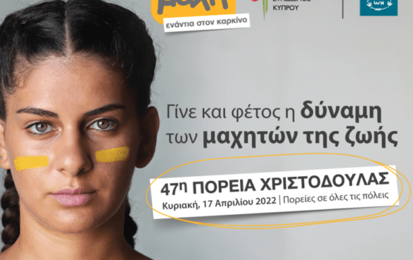 Πορεία Χριστοδούλας 2022: Γίνε και φέτος η δύναμη των μαχητών της ζωής… O Αντικαρκινικός Σύνδεσμος Κύπρου και η Τράπεζα Κύπρου, μαζί στη μάχη ενάντια στον καρκίνο, καλούν όλους να γίνουν και φέτος η δύναμη των μαχητών της ζωής. Ο Αντικαρκινικός Σύνδεσμος Κύπρου και η Τράπεζα Κύπρου διοργανώνουν για 47η