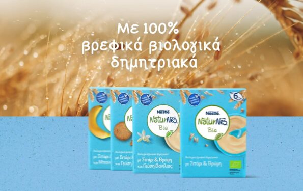 Η Nestlé, μετά το μεγάλο λανσάρισμα που έκανε το 2018 με τα προϊόντα NaturNes® Bio Βιολογικά Βρεφικά Δημητριακά σε μοναδική συσκευασία και σε 3 ξεχωριστές γεύσεις, καλωσορίζει μια ακόμη νέα γεύση, με Γεύση Μπισκότο! Nestlé NaturNes® Bio Τα «Βιολογικά Βρεφικά Δημητριακά της Nestle» είναι φτιαγμένα από 100% βιολογικά δημητριακά (σιτάρι