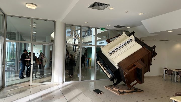 Δύο εμβληματικά γλυπτά 8 πιάνων δώρισαν στο Πανεπιστήμιο Κύπρου Kyriakides και Avantgarde… Σε μία σεμνή τελετή, η Kyriakides Piano Gallery και ο Πολιτιστικός Οργανισμός Avantgarde παρέδωσαν και επίσημα στο Πανεπιστήμιο Κύπρου δύο εμβληματικά έργα τέχνης, που αποτελούνται από οκτώ πιάνα! Συγκεκριμένα, τα έργα The Piano Cube και Floating Pianos του