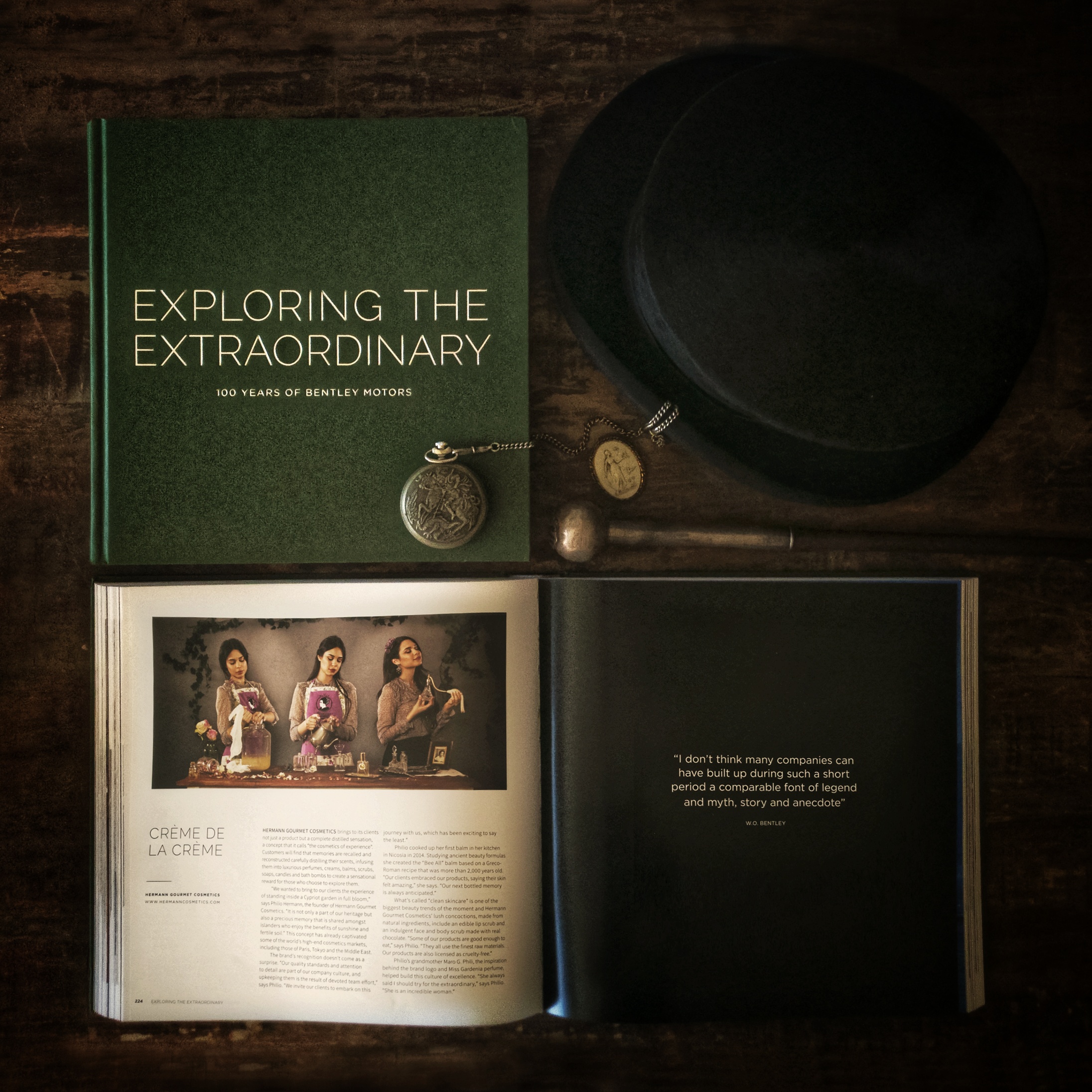 «Κατά τη διάρκεια μιας συνηθισμένης ημέρας στα γραφεία μας, πήραμε ένα τηλεφώνημα από τον εκδοτικό οίκο St James House Publications. Από την άλλη άκρη της γραμμής ακούσαμε με έκπληξη ότι το brand μας είχε επιλεγεί για μια συλλεκτική έκδοση. Μια έκδοση μεγάλου κύρους – με τίτλο “Εξερευνώντας το Εξαιρετικό: 100 Χρόνια Bentley Motors” (“Exploring the Extraordinary: 100 Years of Bentley Motors”). Και θα είμασταν μέρος του “Bentley Lifestyle”… Αμέσως καταλάβαμε πόσο σημαντική ήταν αυτή η επιλογή για το brand μας» μου εξηγή η Φιλιώ Hermann, η ιδρύτρια των Hermann Gourmet Cosmetics.