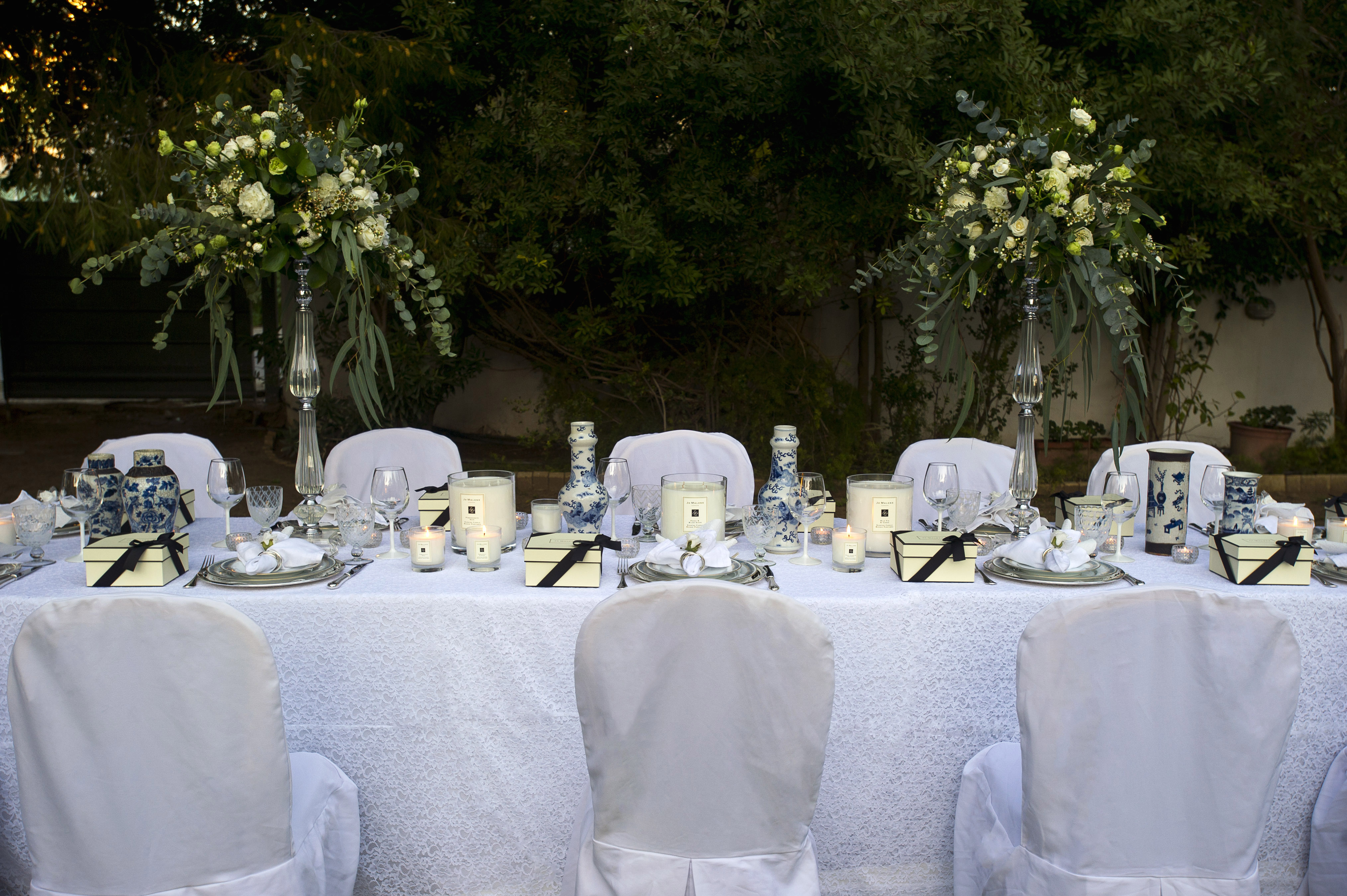 Είχαμε ορίσει μια συγκεκριμένη ημέρα για την προετοιμασία των τραπεζιών της δεξίωσης μας, ή μάλλον της δεξίωσής σας… Είμασταν κατάλληλα προετοιμασμένες, όμως, λογαριάζαμε χωρίς τον… καιρό! Οι συχνές πυκνές βροχές μάς άλλαζαν τα πλάνα… Και αφού περιμέναμε αρκετές μέρες μέχρι να βελτιωθούν οι καιρικές συνθήκες… τελικά, κατά την διάρκεια της φωτογράφησης, μάς έκανε τη χάρη και είχαμε μια ηλιόλουστη, ανοιξιάτικη μέρα! Σ’ έναν ονειρεμένο κήπο, αρχίσαμε πρωί πρωί να βάζουμε σε εφαρμογή τα concept της Στέλλας Βασιλοπούλου! Μετά από αρκετές ώρες στήθηκαν τα τραπέζια, με έμφαση και στην παραμικρή λεπτομέρεια… Και όπως θα δείτε το αποτέλεσμα αποζημιώνει με το παραπάνω… Οι μόνοι που έλειπαν; Η νύφη κι ο γαμπρός! Είχαμε όμως, τους πρωταγωνιστές της διακόσμησης! Τα μοναδικά κεριά της Jo Malone London…
