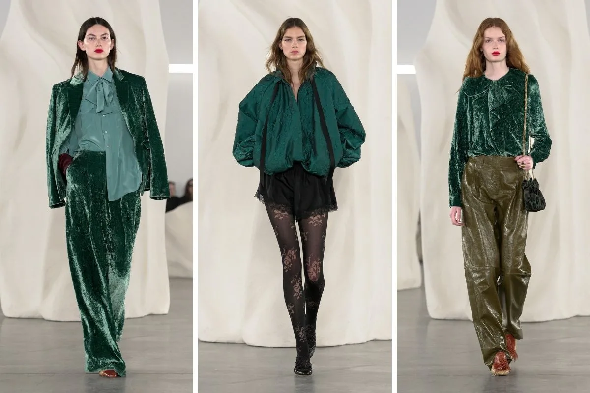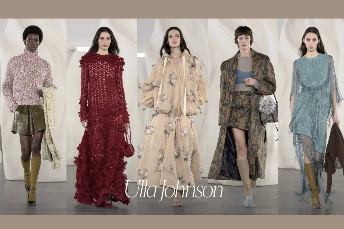 Αυτή τη φορά, η Ulla Johnson πρότεινε χρώμα, συναίσθημα και πολυεπίπεδη υφή ως πράξη αισιοδοξίας. Η συλλογή της λειτούργησε σαν αντίδοτο στη «γκρίζα» διάθεση των καιρών, με την ίδια τη σχεδιάστρια να μιλά για τη δύναμη του χρώματος ως πηγή χαράς και ανθεκτικότητας .Σμαραγδί, cherry red, cerulean blue, fuchsia, baby pink, olive, μεταλλικά ασημί και χρυσά συνδυάστηκαν με μαύρο, δημιουργώντας μια παλέτα πλούσια αλλά ελεγχόμενη . Δεν επρόκειτο για εκρηκτική υπερβολή… Ήταν μια μελετημένη χρωματική ένταση που έδινε ενέργεια χωρίς να χάνει την κομψότητα.