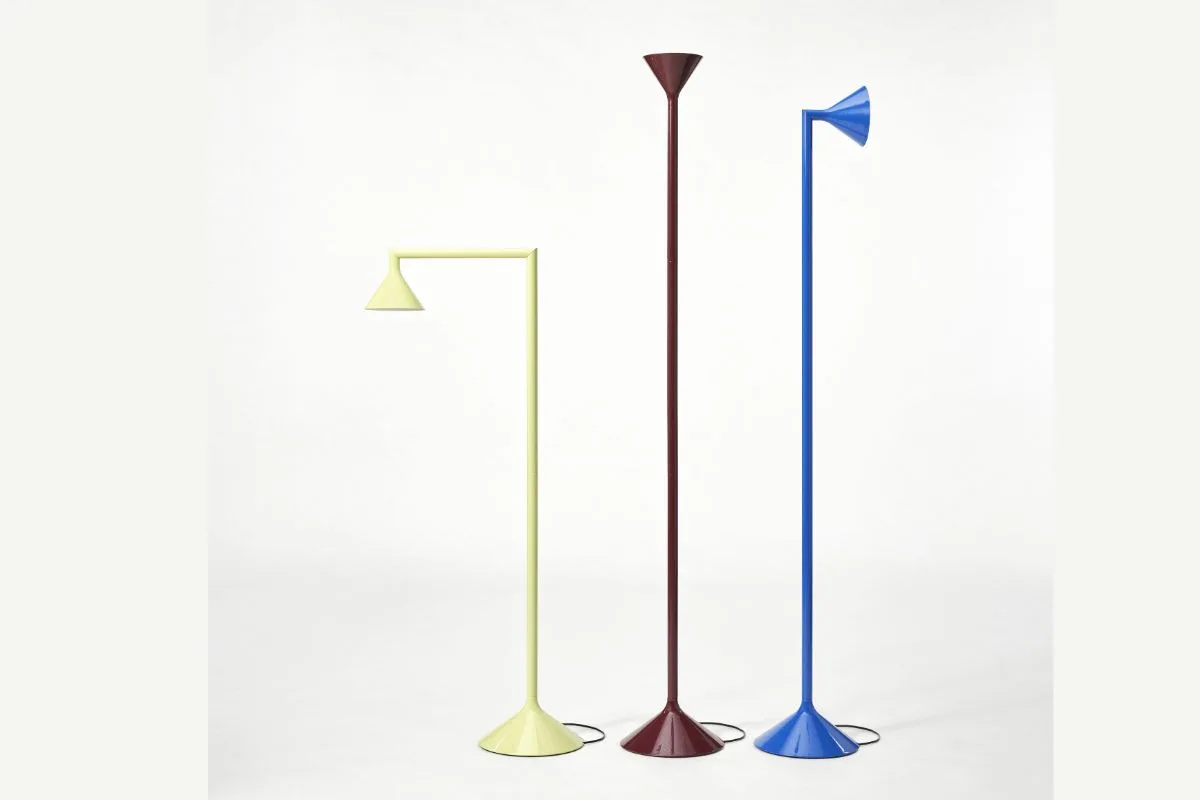 Ο Ολλανδός σχεδιαστής Lex Pott αναρωτήθηκε τι συμβαίνει όταν κόβεις έναν χαλύβδινο κύλινδρο στις 45 μοίρες και αρχίζεις να περιστρέφεις τα κομμάτια. Δύο λοξές τομές μετατρέπουν ένα φωτιστικό δαπέδου σε ένα πιο ευέλικτο αντικείμενο: περιστρέφοντάς το προς μία κατεύθυνση γίνεται προβολέας, προς άλλη κατεύθυνση γίνεται φωτιστικό ανάγνωσης, ενώ σε μία τρίτη δημιουργεί έμμεσο φωτισμό προς τα πάνω – κάθε επιλογή δημιουργεί διαφορετική ατμόσφαιρα στον ίδιο χώρο. Η λειτουργία έχει εμπνευστεί από τη γεωμετρία, και η παιχνιδιάρικη κίνηση της περιστροφής μεταμορφώνει το φωτιστικό κάθε φορά. Το κατοχυρωμένο σχέδιο διαθέτει καπέλο σε μορφή τρομπέτας και λεπτό μεταλλικό κορμό που αναδύεται από μια φαρδιά βάση σε σχήμα κώνου, διαθέσιμο σε 3 αποχρώσεις.