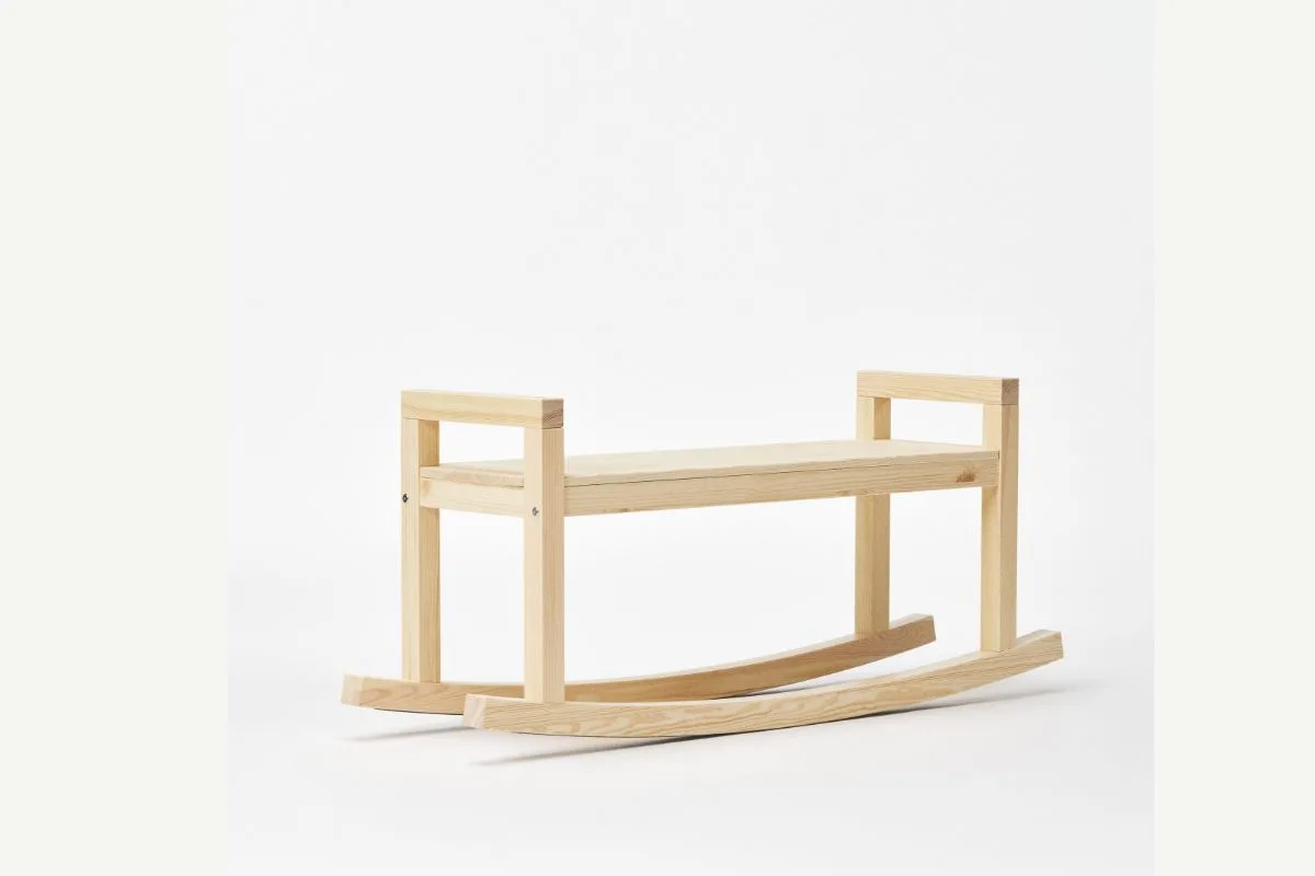 Το παγκάκι-κούνια αποτελεί την πιο καθαρή έκφραση της παιχνιδιάρικης λειτουργικότητας. Κάνει ακριβώς αυτό που δείχνει: σε λικνίζει απαλά από τη μία πλευρά στην άλλη, ενώ λειτουργεί εξίσου καλά και ως απλό παγκάκι. Μπορείς να δοκιμάσεις να καθίσεις ακίνητος αν θέλεις, αλλά η καμπυλωτή του βάση έχει άλλη άποψη. Κατασκευασμένο από μασίφ πεύκο με όλα τα φυσικά χαρακτηριστικά του, σύμφωνα με το σήμα κατατεθέν του σκανδιναβικού design, τα ανθεκτικά στηρίγματά του αντέχουν την επαναλαμβανόμενη χρήση.
