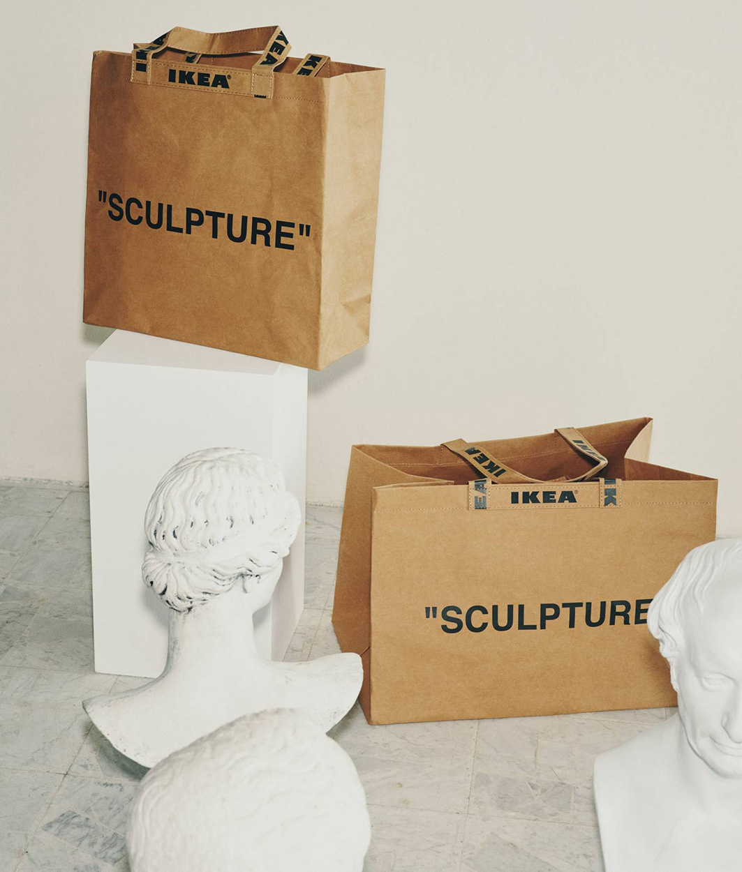 Καμία συλλογή της ΙΚΕΑ δεν θα ήταν ολοκληρωμένη χωρίς την εικονική τσάντα της ΙΚΕΑ. Μπορεί αυτή η απίστευτη τσάντα μεταφοράς της συλλογής MARKERAD να μοιάζει με τη καφετί χαρτοσακούλα της ΙΚΕΑ… Σίγουρα όμως, όταν γράφει πάνω της τη λέξη «SCULPTURE» κι έχει την υπογραφή του Virgil Abloh θα είναι το statement σου όταν την κρατάς και πας για ψώνια!