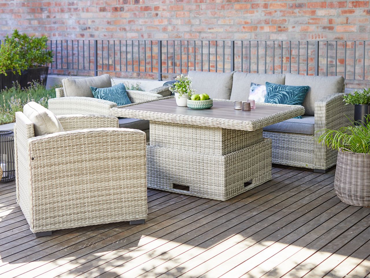 Καταρχήν, ανανεώσαμε τα έπιπλα κήπου, γιατί στο JYSK ανακαλύψαμε τα πιο στιλάτα και λειτουργικά σετ που κάνουν τη ζωή μας πιο άνετη. Το σαλόνι κήπου FJELLERUP από συνθετικό ρατάν, με το «μαγικό» τραπέζι, ήταν το Α και το Ω των αγορών μας. Περιλαμβάνει τριθέσιο καναπέ και 2 καρέκλες, αλλά και το super πρακτικό τραπεζάκι. Είναι φανταστικό, αφού από coffee table ως δια μαγείας μεταμορφώνεται σε τραπέζι τραπεζαρίας για να σερβίρω το δείπνο μας!