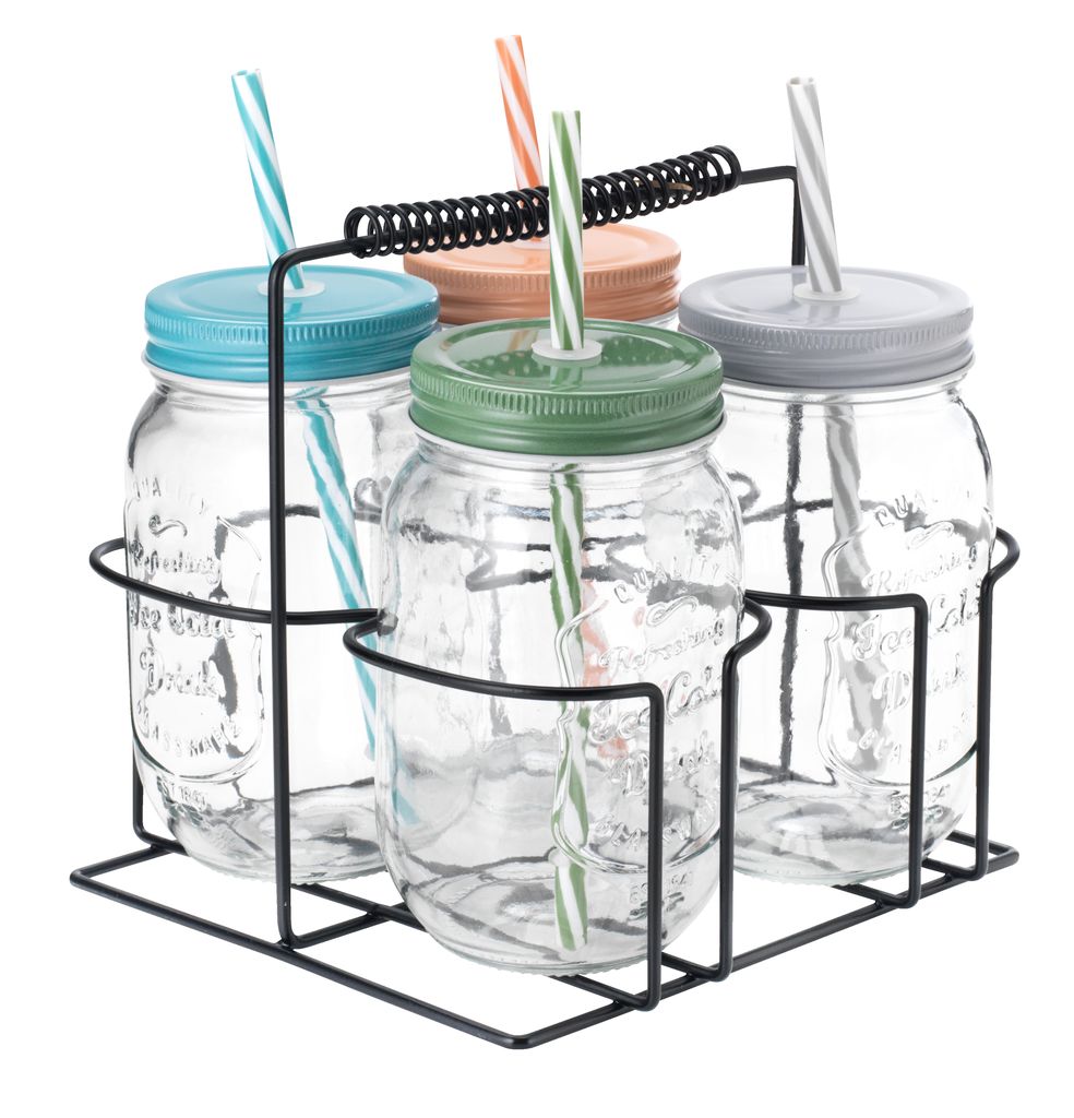 Υπάρχει και μια άλλη εναλλακτική ιδέα! Παρόμοια είναι και τα ποτήρια της σειράς Drinking glass MALLEMUK. Το σετ περιλαμβάνει 4 γυάλινα ποτήρια, με πώμα και καλαμάκι, αλλά έρχονται όλα μαζί μ’ ένα πρακτικό καλαθάκι μεταφοράς! Έτσι δεν σας χρειάζεται δίσκος για να κεράσεις στους φίλους σου το ποτό τους!