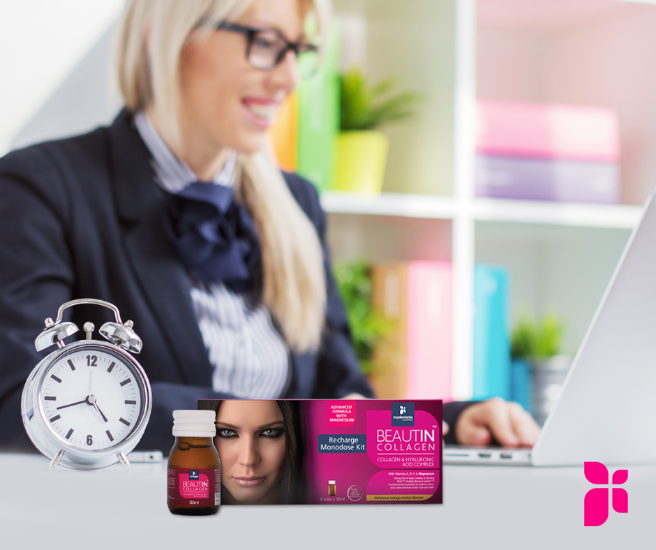 Και επειδή η ομορφιά αρχίζει εκ των έσω, σας προτείνουμε να ξεκινήσετε από σήμερα κιόλας! Θα πάτε σ’ ένα φαρμακείο, και θα προμηθευτείτε το BEAUTΙΝΤΜ COLLAGEN, ένα σύμπλεγμα ομορφιάς σε συμπλήρωμα διατροφής με υδρολυμένο κολλαγόνο, ενισχυμένο με υαλουρονικό οξύ, μαγνήσιο βιταμίνες A, B, C και ψευδάργυρο, το οποίο παρέχει σημαντικά οφέλη στον οργανισμό: Καταρχήν, προάγει την υγιή και όμορφη επιδερμίδα εκ των έσω, βελτιώνει την όψη του δέρματος, δυναμώνει τα μαλλιά, τα νύχια και όχι μόνον. Παράλληλα, ενδυναμώνει τους συνδετικούς ιστούς, τους χόνδρους και τις αρθρώσεις, ενισχύει τη φυσιολογική λειτουργία των οστών και μυών, βοηθά στη μείωση της κόπωσης και των μυϊκών κραμπών. Οι αντιοξειδωτικές ιδιότητές του καταπολεμούν τις ελεύθερες ρίζες, παρέχει υψηλής ποιότητας κολλαγόνο από καθαρή φυσική πηγή ιχθύων για την καλύτερη αξιοποίησή του από τον οργανισμό, ενώ περιέχει κολλαγόνο PeptanTM σε μορφή πεπτιδίων για αυξημένη απορρόφηση. Η φόρμουλα συστατικών του BEAUTINΤΜ COLLAGEN συμβάλλει στην ενίσχυση της φυσιολογικής παραγωγής κολλαγόνου, και είναι ενισχυμένο με υαλουρονικό οξύ για τα καλύτερα δυνατά αποτελέσματα. Το Beautin Collagen θα το βρείτε εμπλουτισμένο και με Μαγνήσιο σε 5 μονοδόσεις, για να το έχεις πάντα μαζί σου! Θα το λατρέψεις!