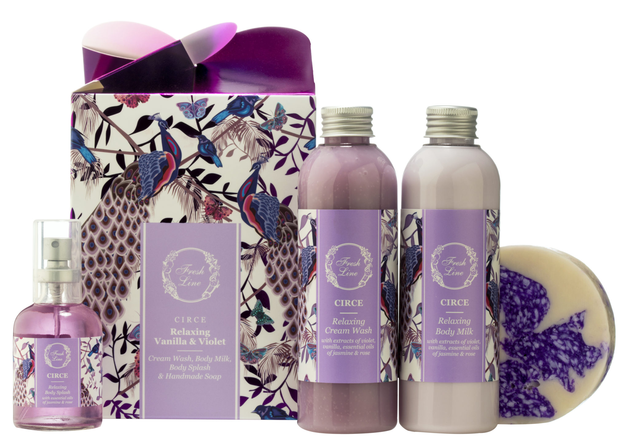 Ψάχνετε το δώρο για τη φίλη που σας κάλεσε στο χριστουγεννιάτικο πάρτι στο σπίτι της; Στη Fresh Line θα ανακαλύψετε ένα σωρό ιδέες για να πρωτοτυπήσετε… Εμείς εντοπίσαμε το gift set της σειράς Circe που στην εντυπωσιακή του συσκευασία περιλαμβάνει ένα Shower gel (200ml), μια Body lotion (200ml), ένα Body splash (100ml), κι ένα Lavender soap (120gr). Με άρωμα βιολέτας και βανίλιας θα γίνει το αγαπημένο της!